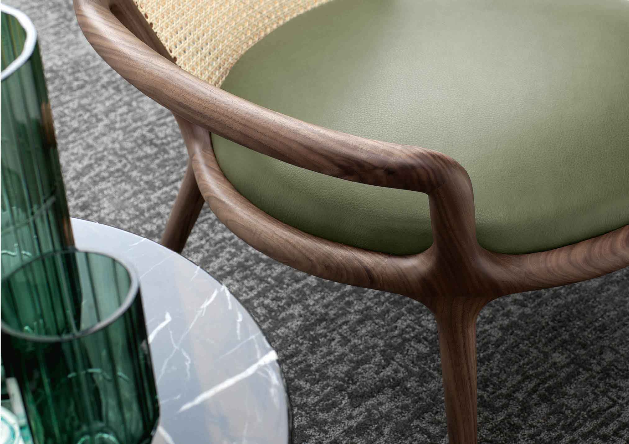 Patti is the innovative designer armchair for the living room by BertO which redefines the concept of elegance thanks to the research for style carried out by the BertO team and to the use of the most sophisticated technology applied to the great upholstery traditions of Made in Meda.