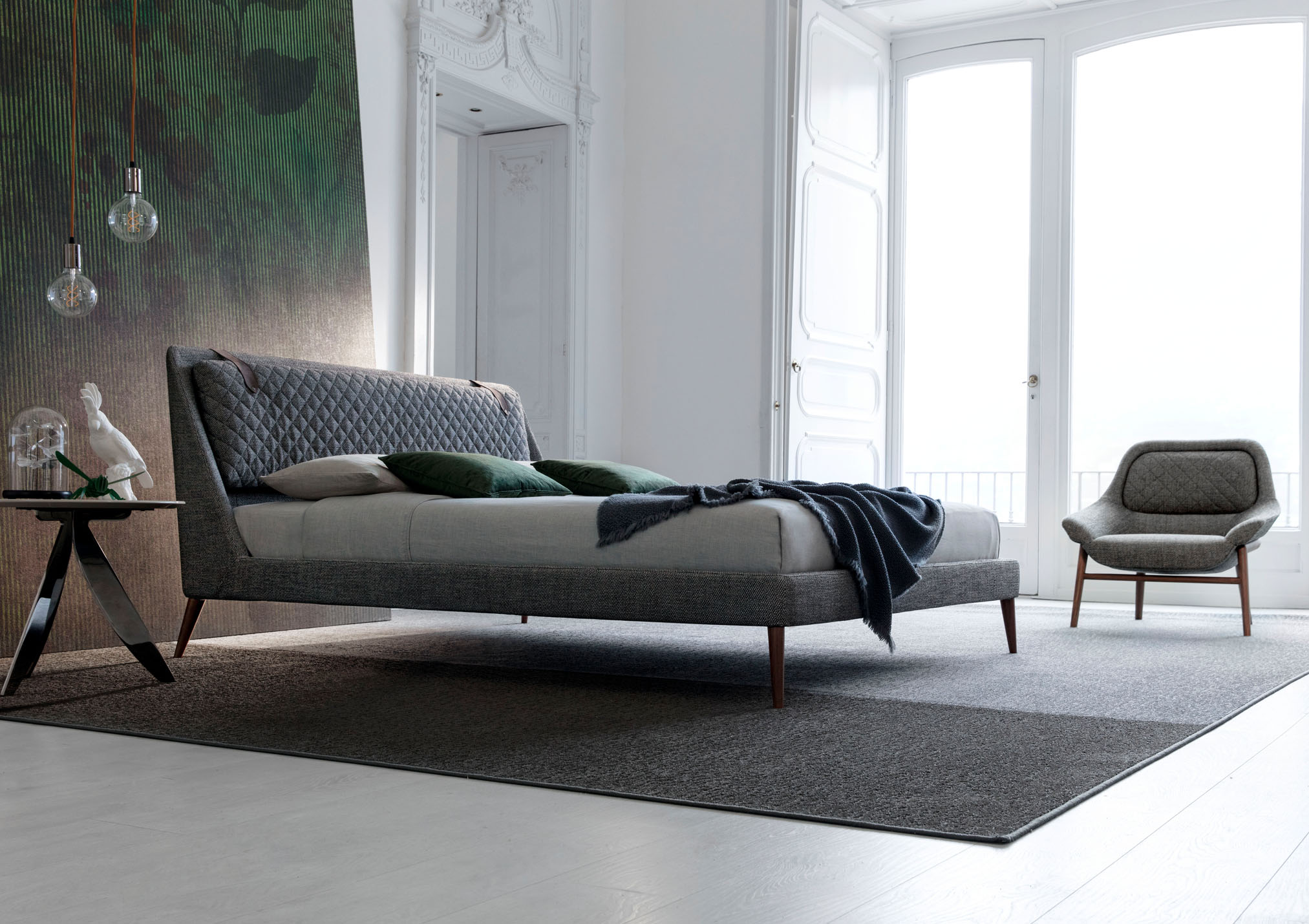 Light, precious and evocative design, a real star for your comfortable sleep. Chelsea is a bed with high feet designed by BertO in order to offer an exclusive relax thanks to the high headboard fixed on the bed base for a soft and geometrical balance.