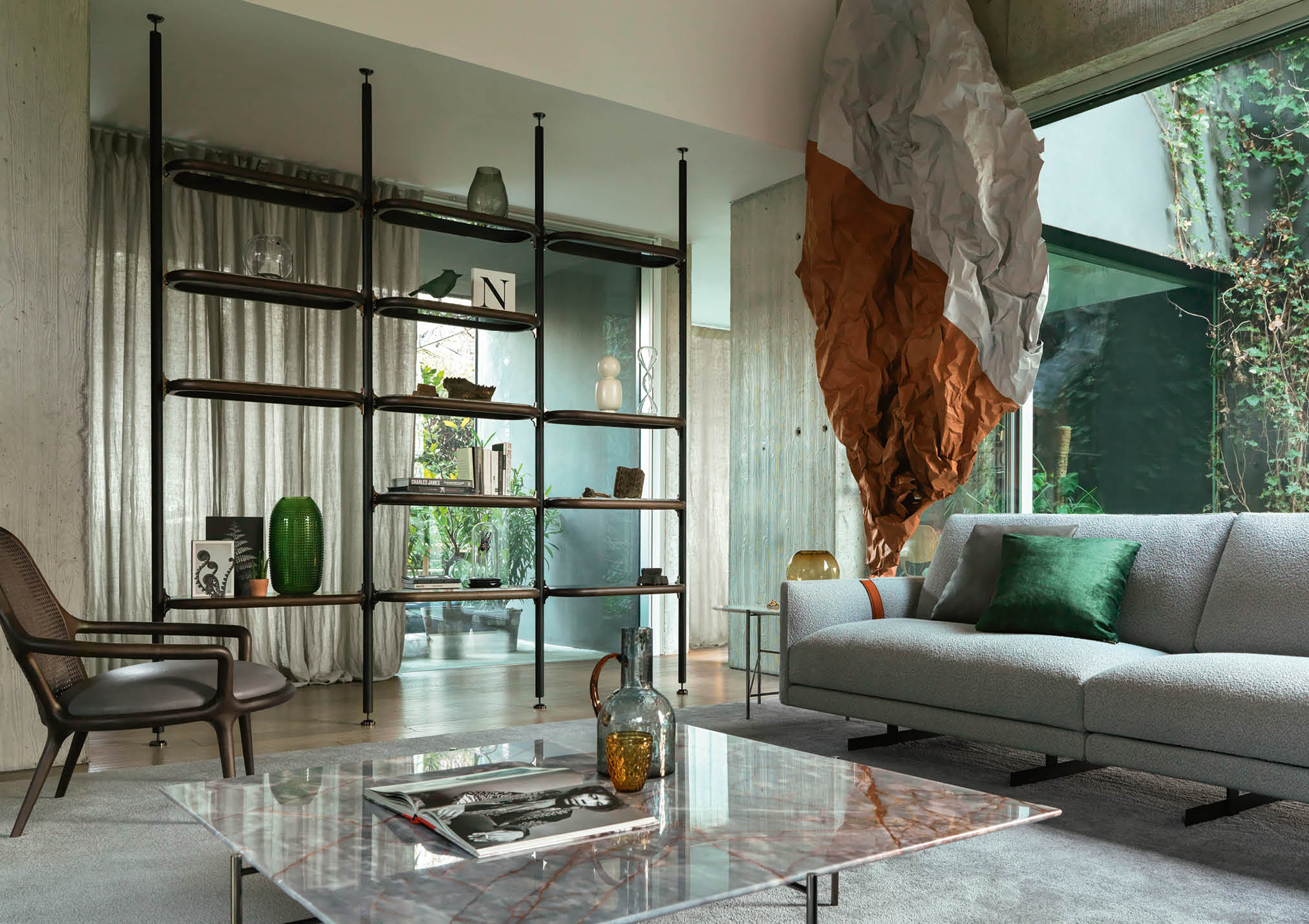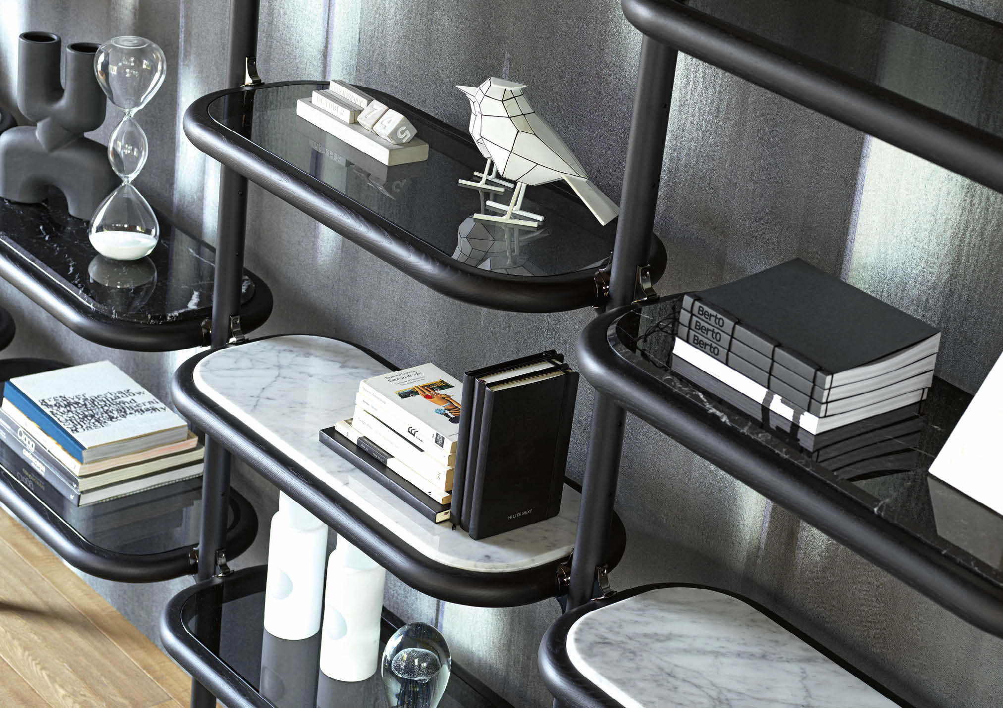 IAN Ian is a modular designer bookcase by BertO, created by the union of various modular elements: a system designed to decorate the walls of your home or to separate the open spaces giving a sense of depth and transparency. view the collection