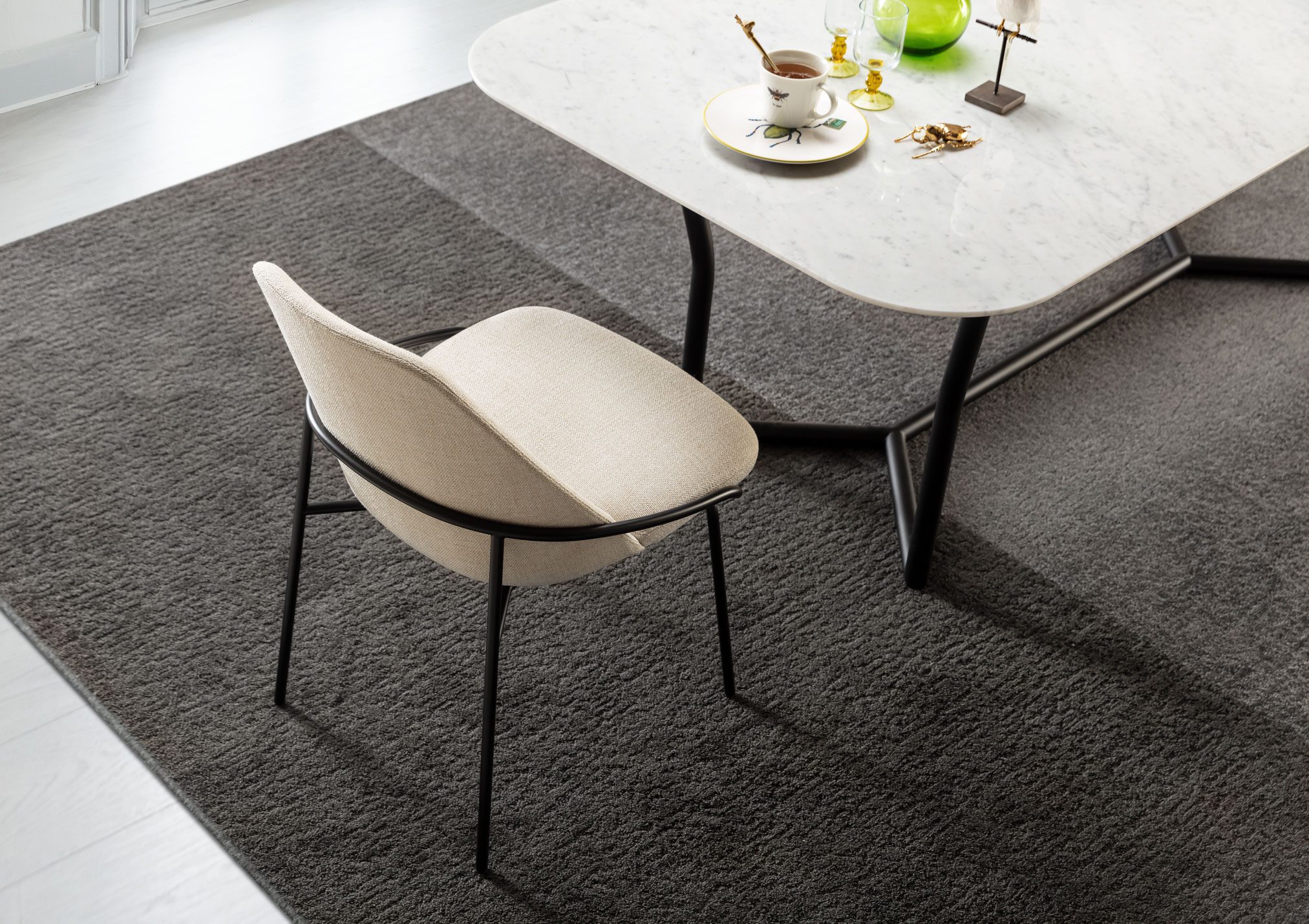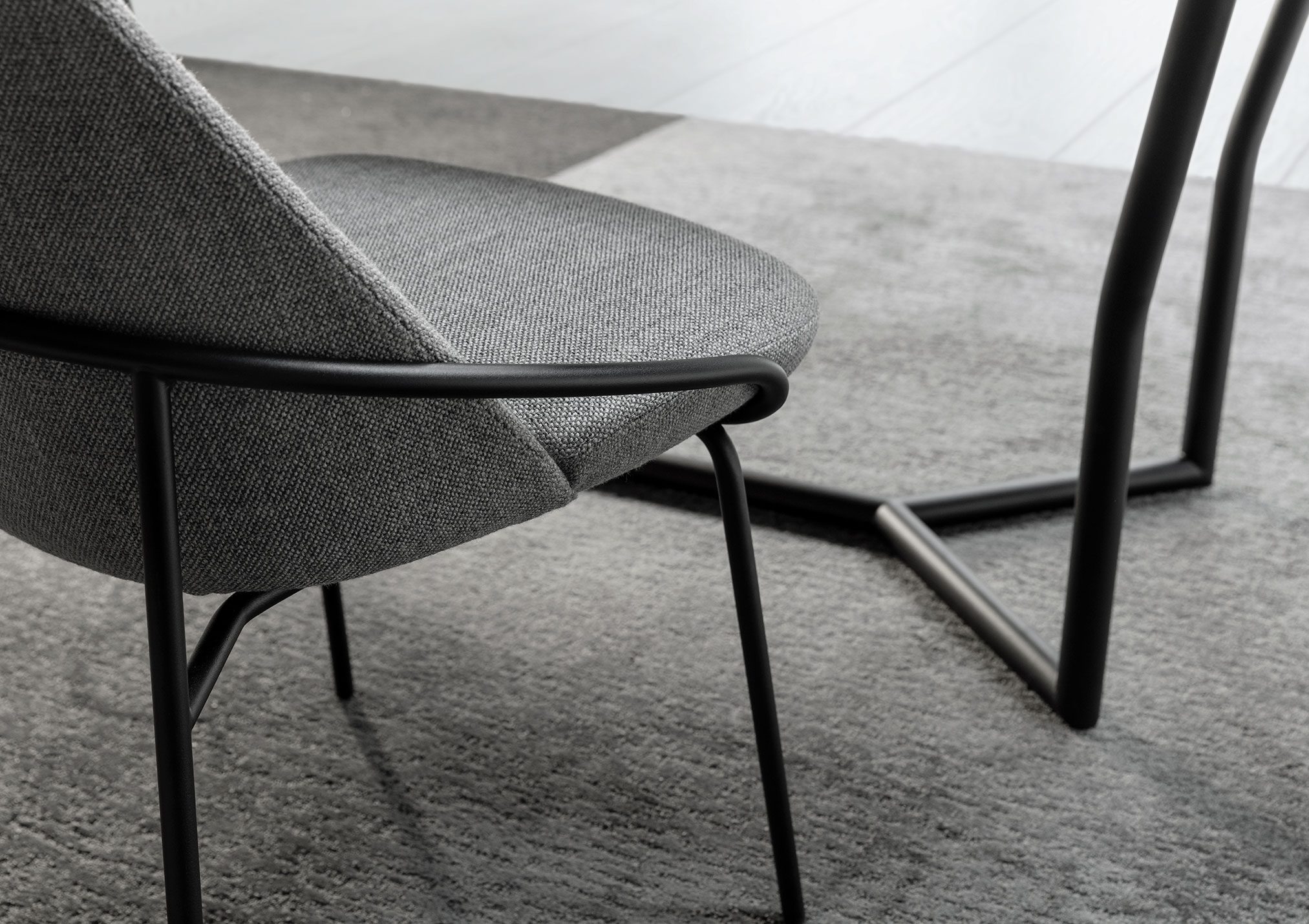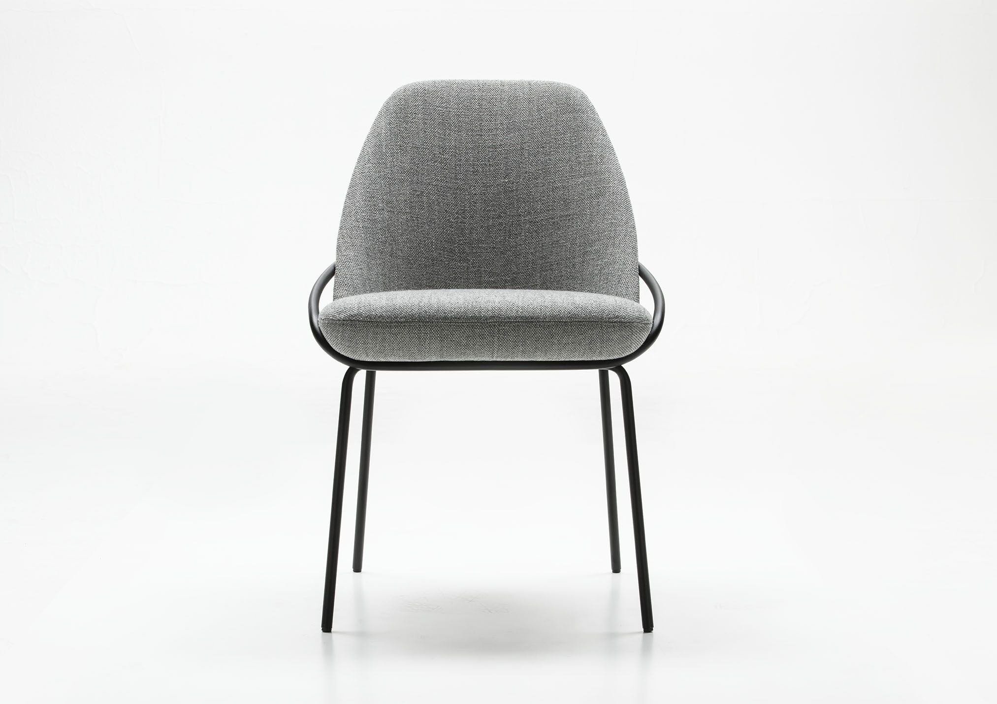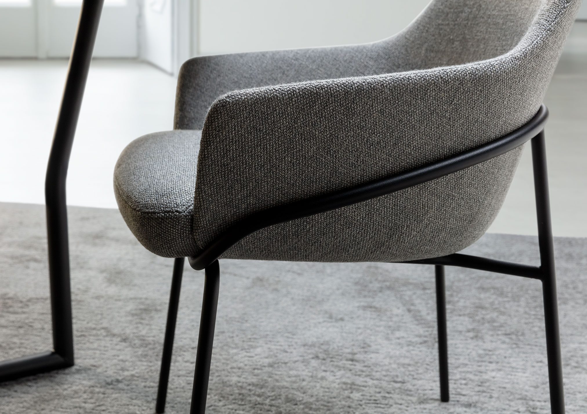 The design chair Jackie is characterised by its clean, simple lines which meet to create a surprising and original play of shape and form. The generous, gently rounded seat sits delicately on the metal structure giving a light, slender effect. This chair welcomes you in a soft, embrace, designed in the smallest details to enhance your moments of relaxation and conviviality.