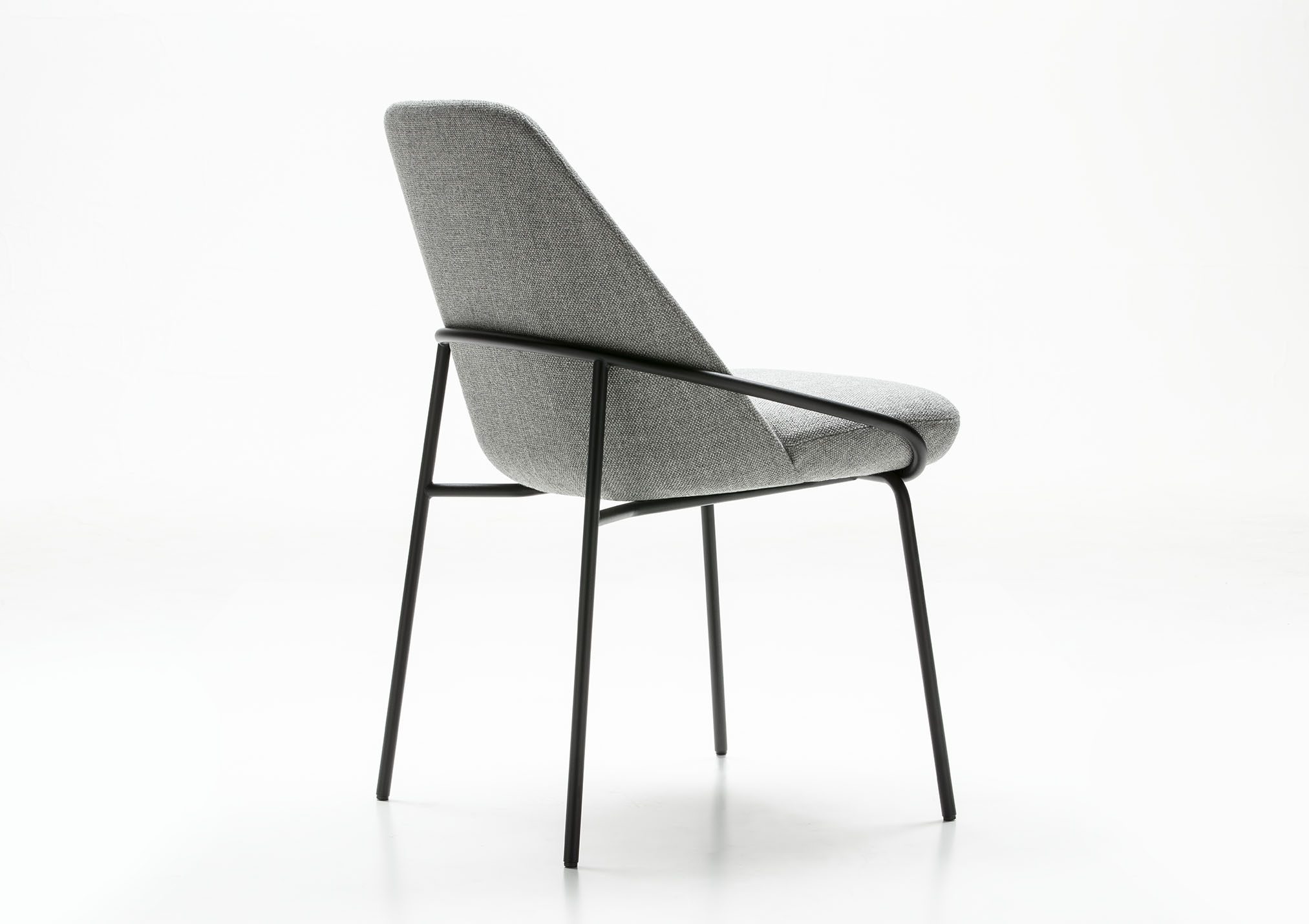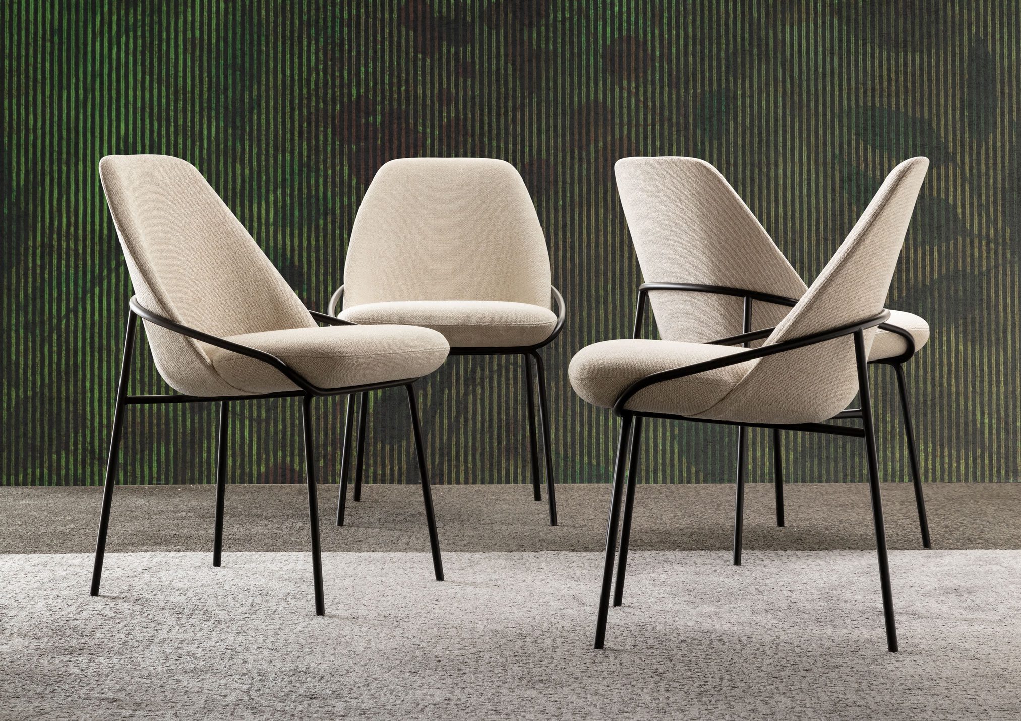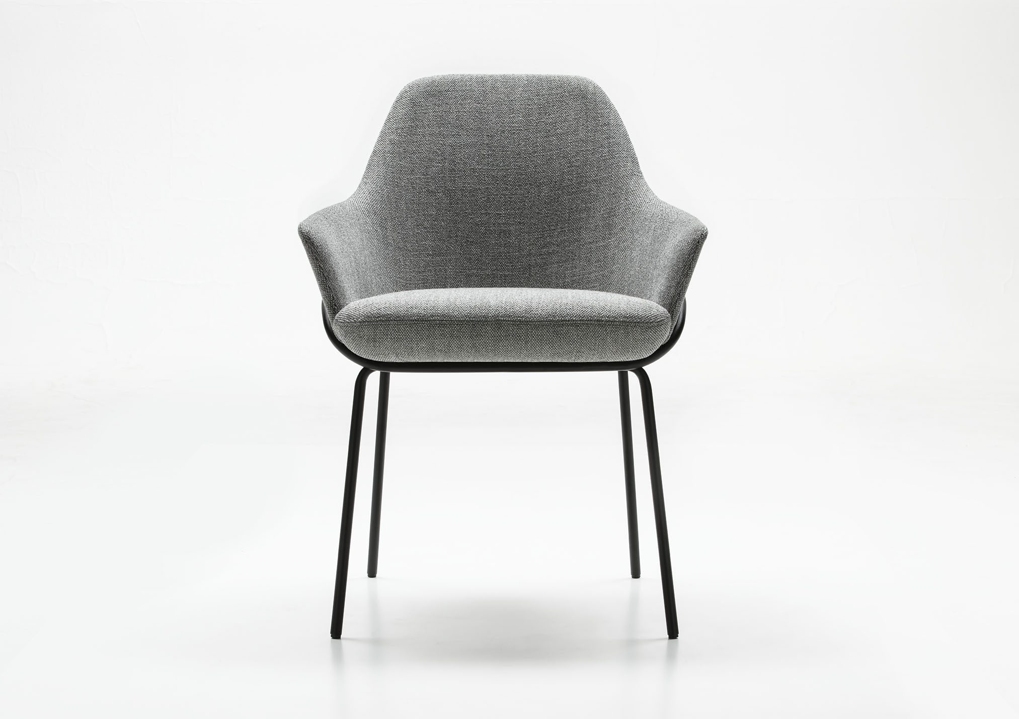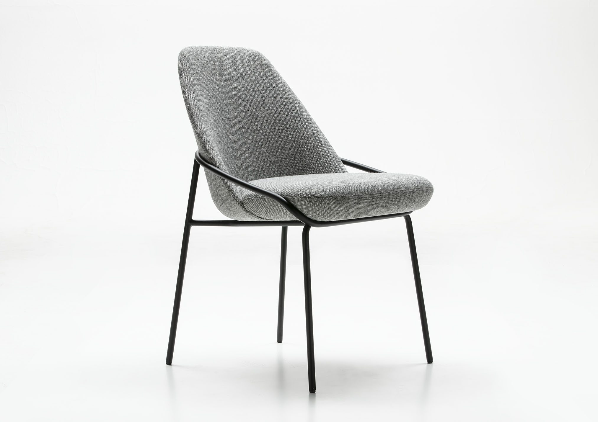 The design chair Jackie is characterised by its clean, simple lines which meet to create a surprising and original play of shape and form. The generous, gently rounded seat sits delicately on the metal structure giving a light, slender effect. This chair welcomes you in a soft, embrace, designed in the smallest details to enhance your moments of relaxation and conviviality.