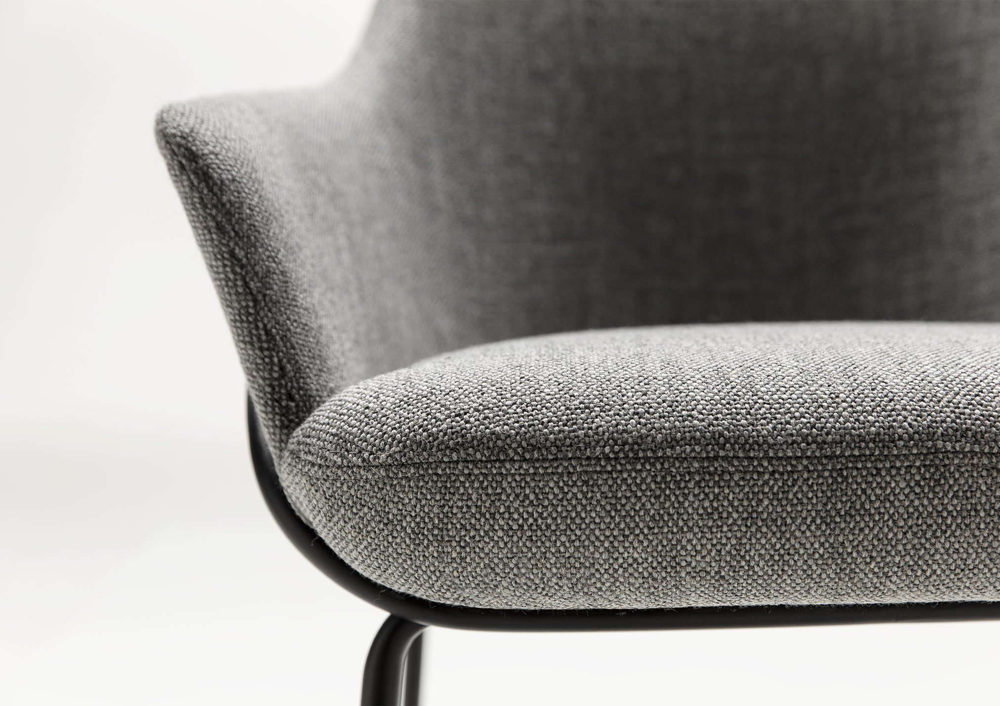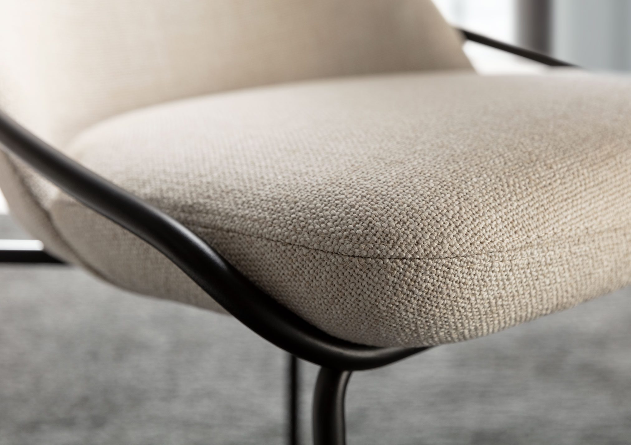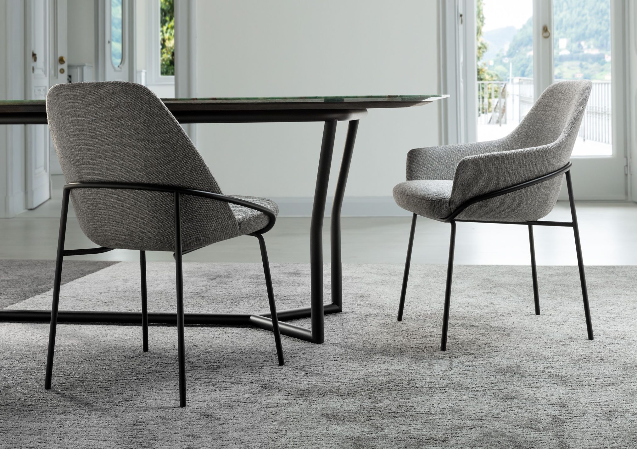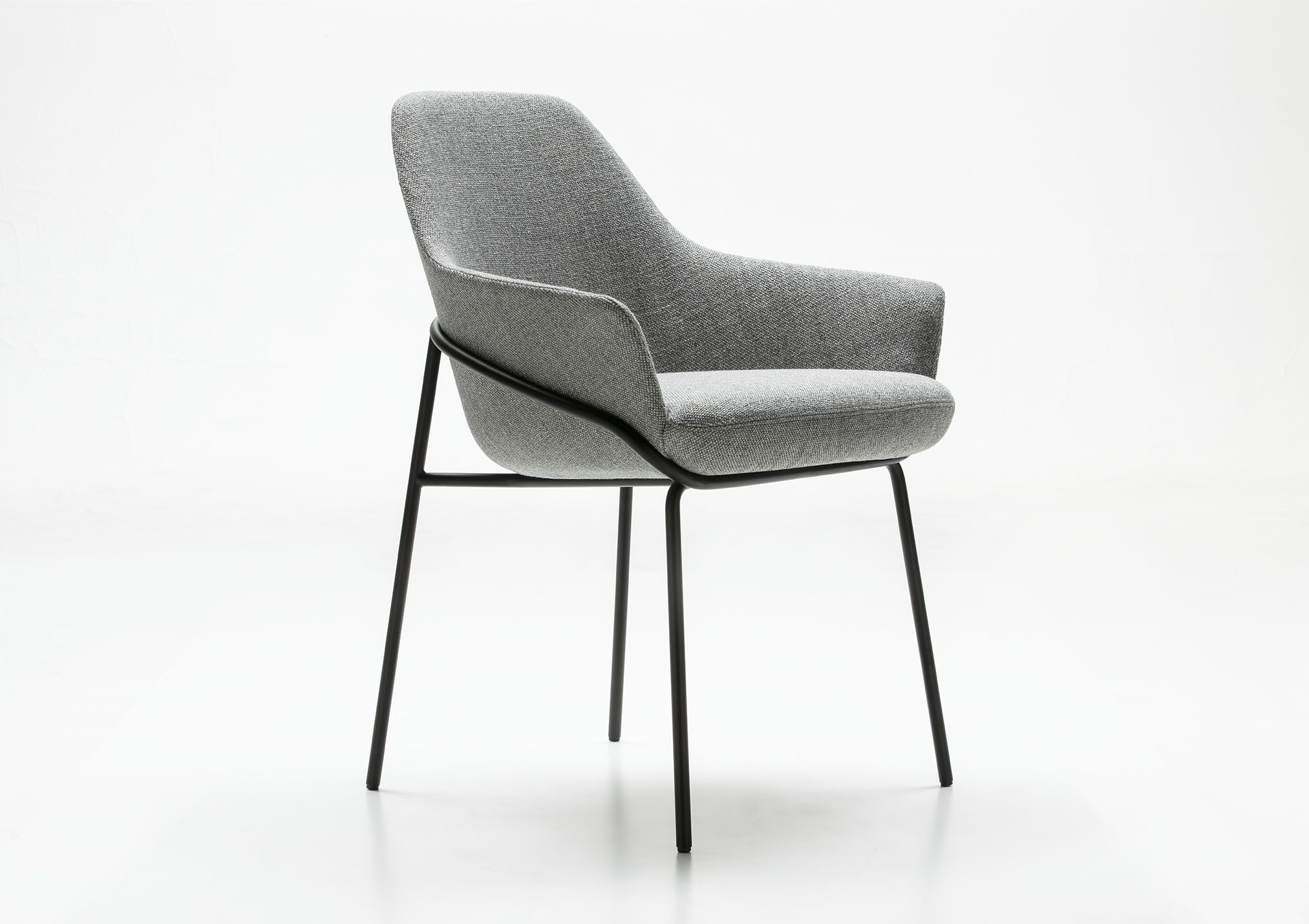 The design chair Jackie is characterised by its clean, simple lines which meet to create a surprising and original play of shape and form. The generous, gently rounded seat sits delicately on the metal structure giving a light, slender effect. This chair welcomes you in a soft, embrace, designed in the smallest details to enhance your moments of relaxation and conviviality.