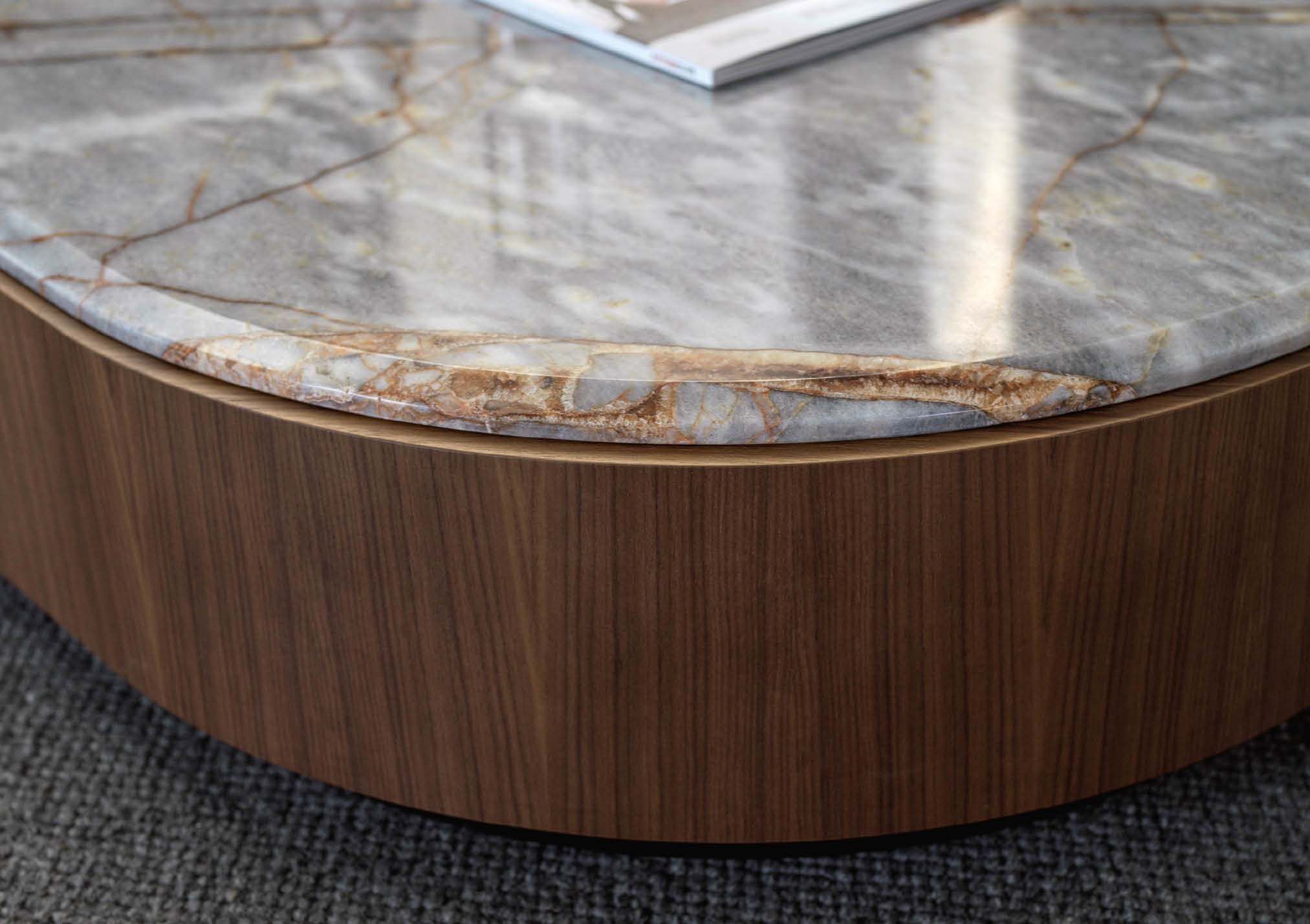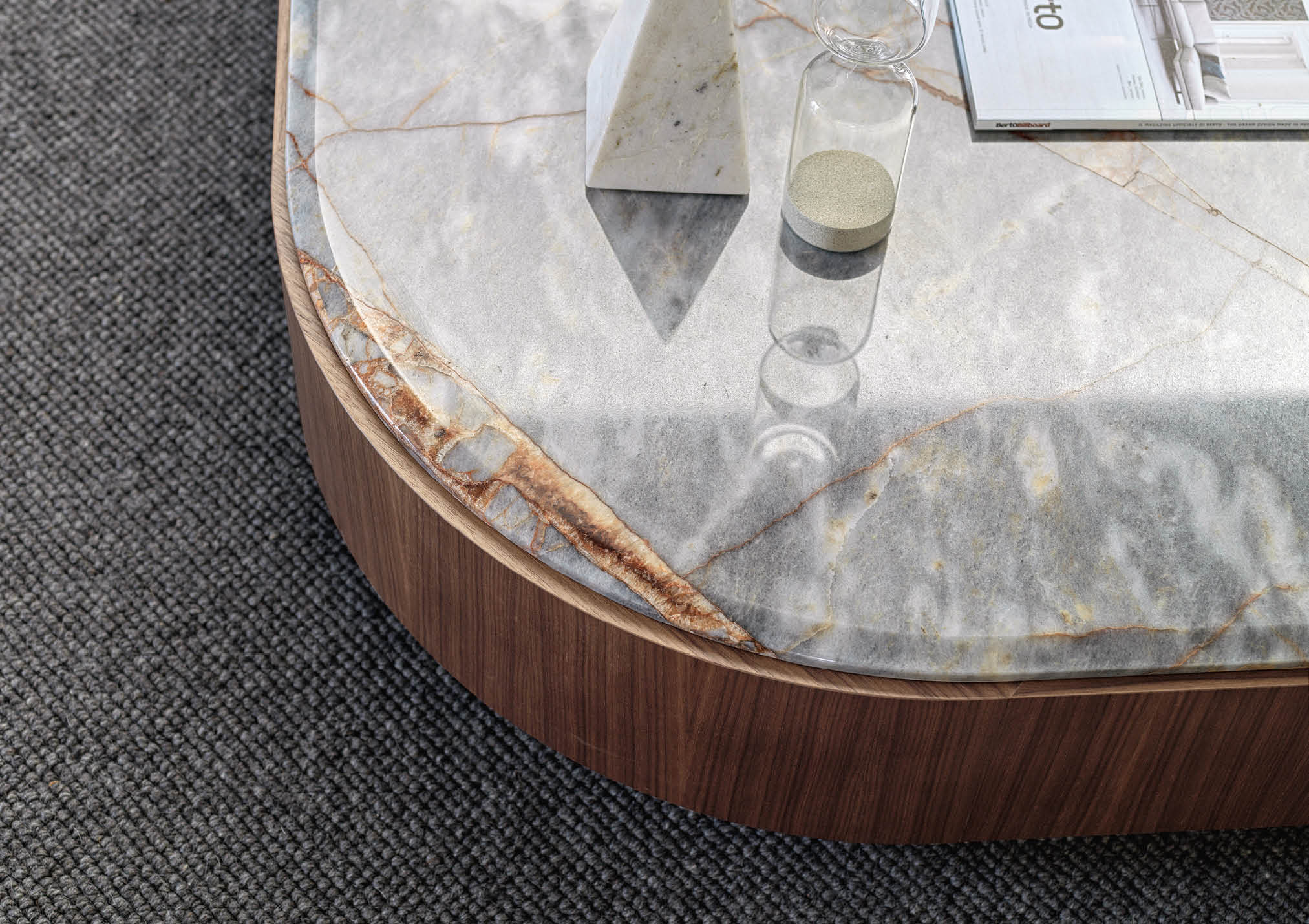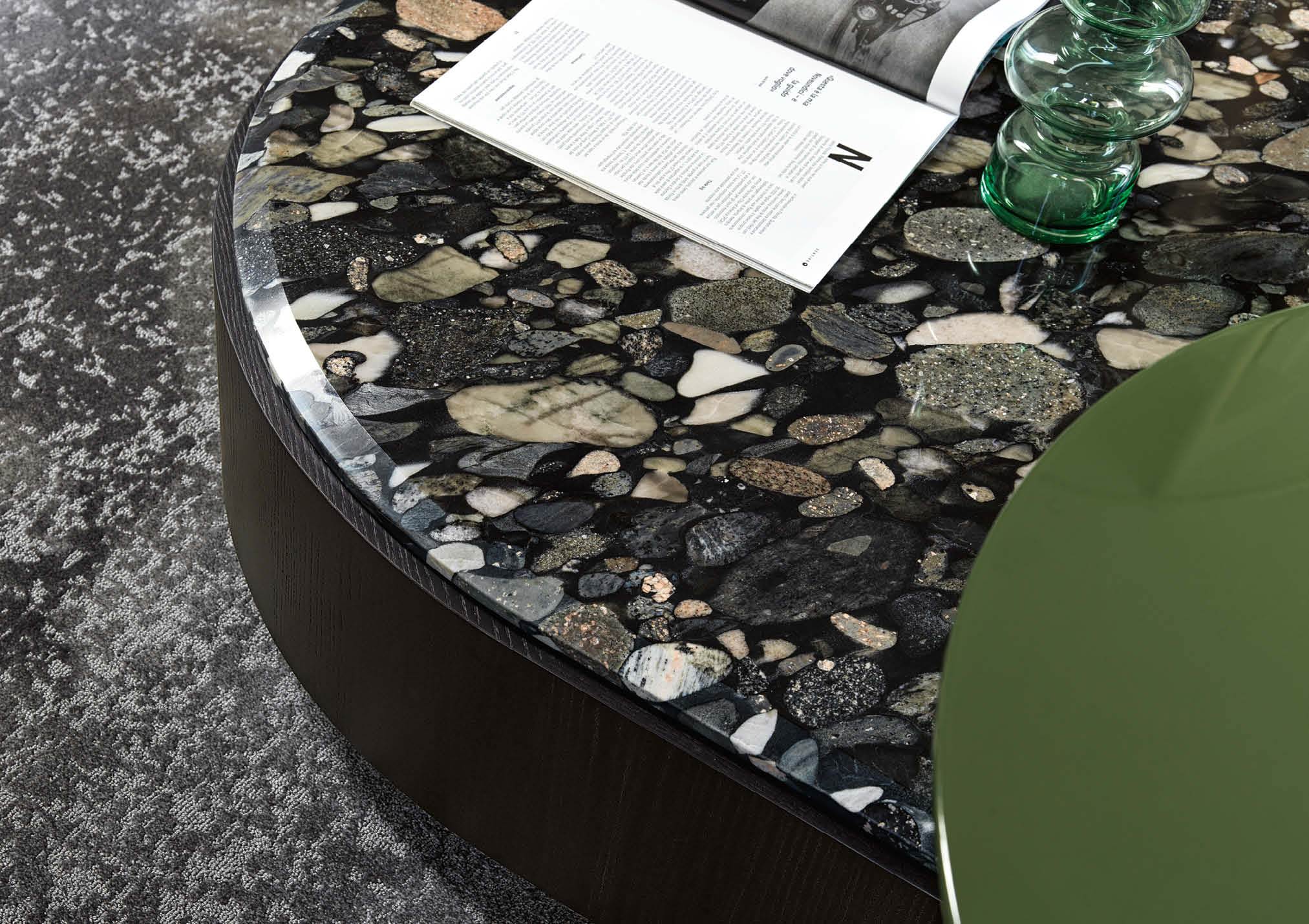 An essential design for this coffee table created by Castello Lagravinese Studio: with its large and important shape, Stage is a solid coffee table that is not afraid of any change or unexpected meeting. The rectangular coffee table Stage is perfect in front of your sofa and at the same is an elegant and sophisticated piece of furniture in combination with the coffee tables Riff and Circus.
