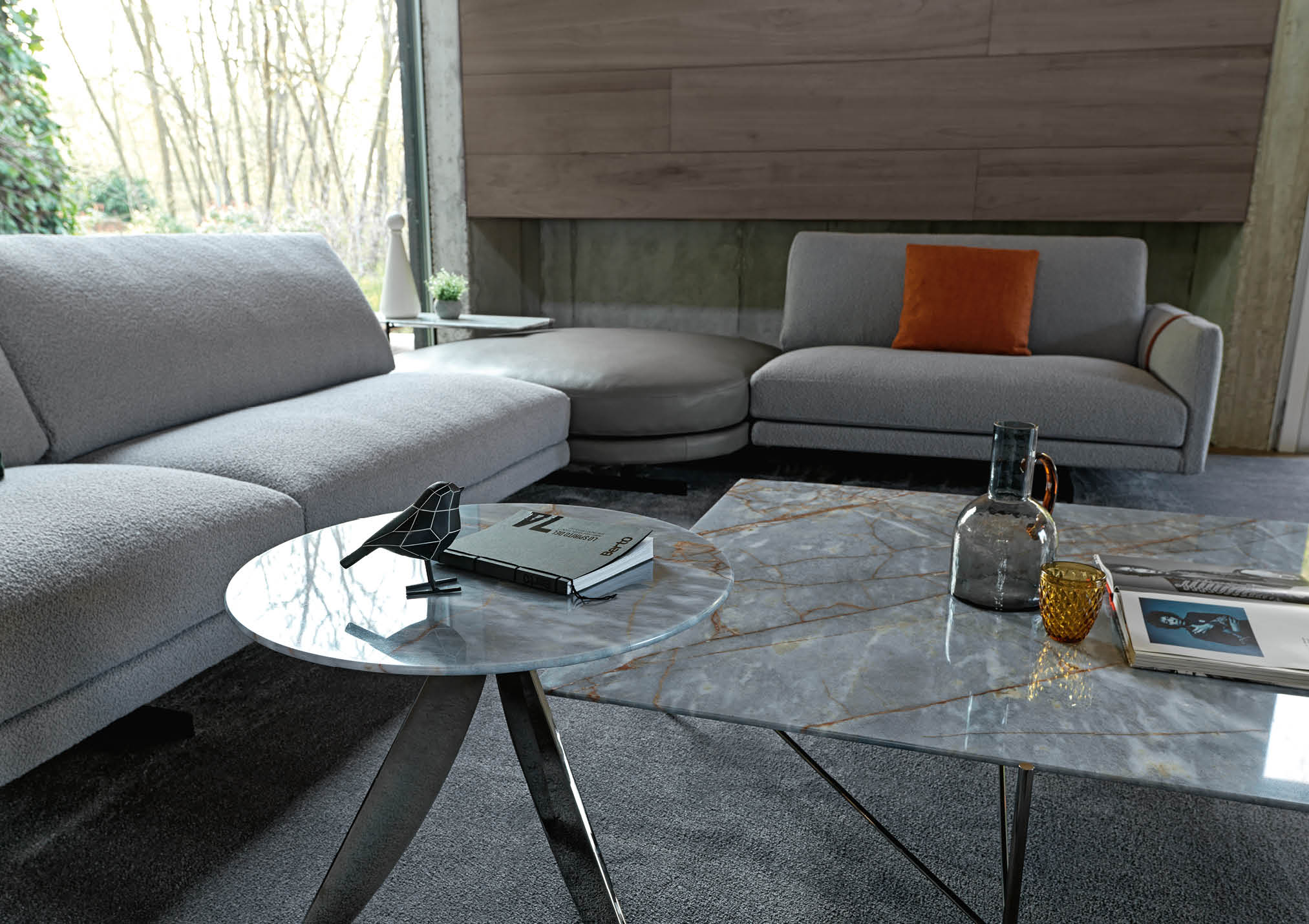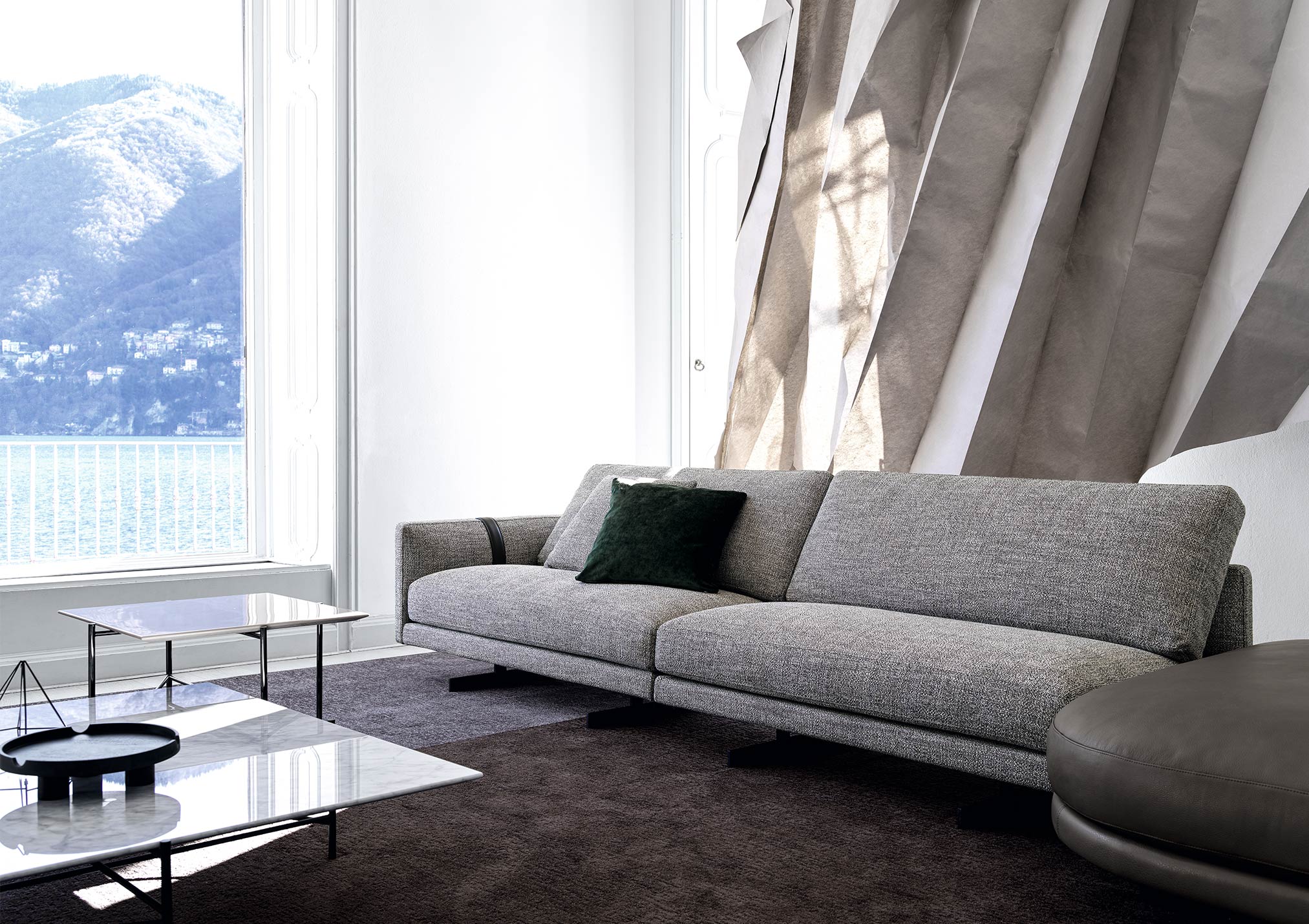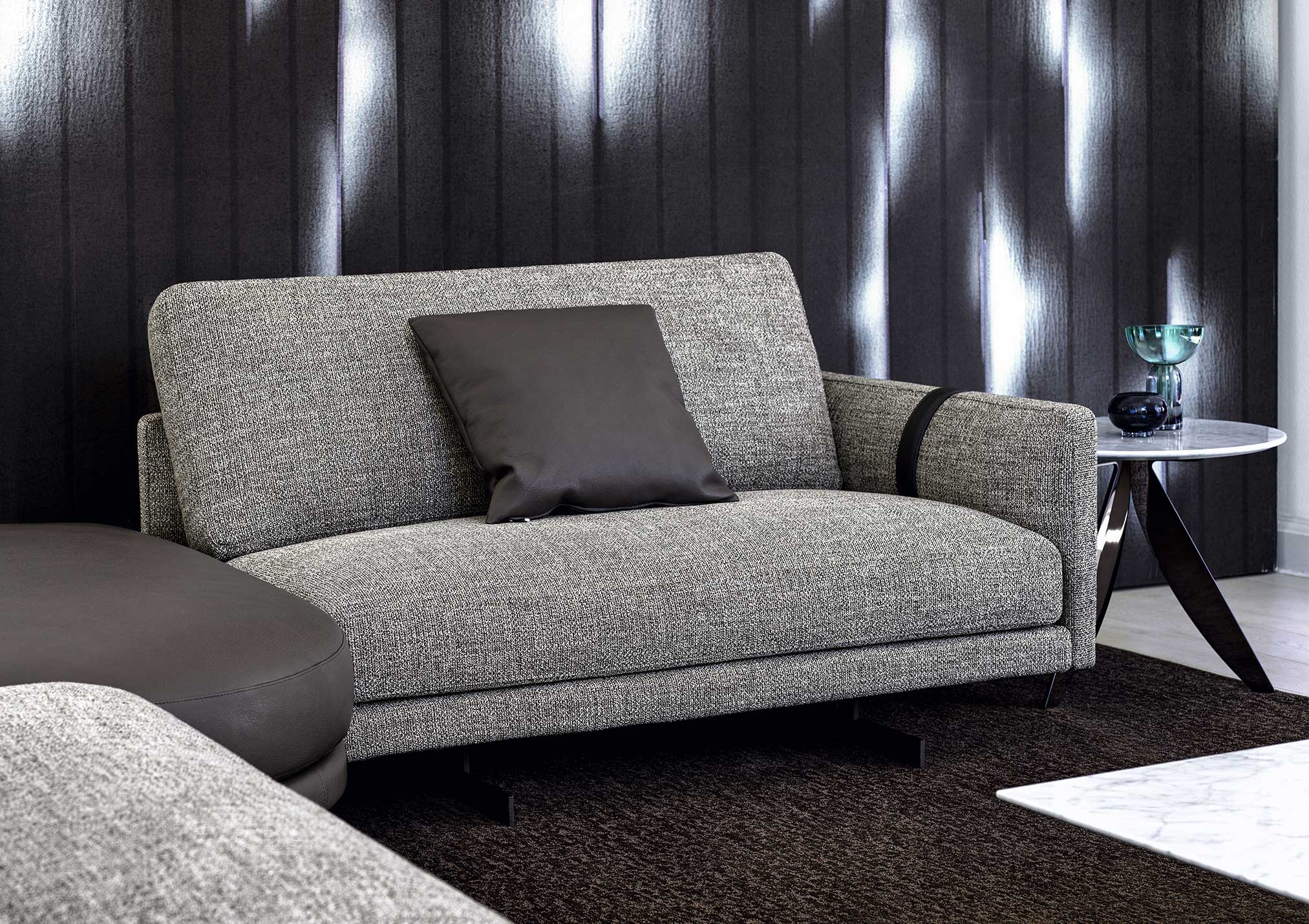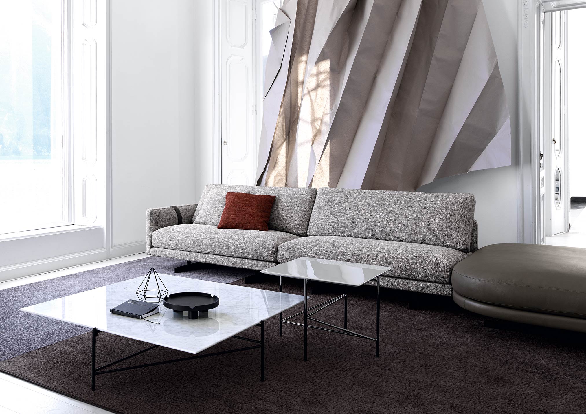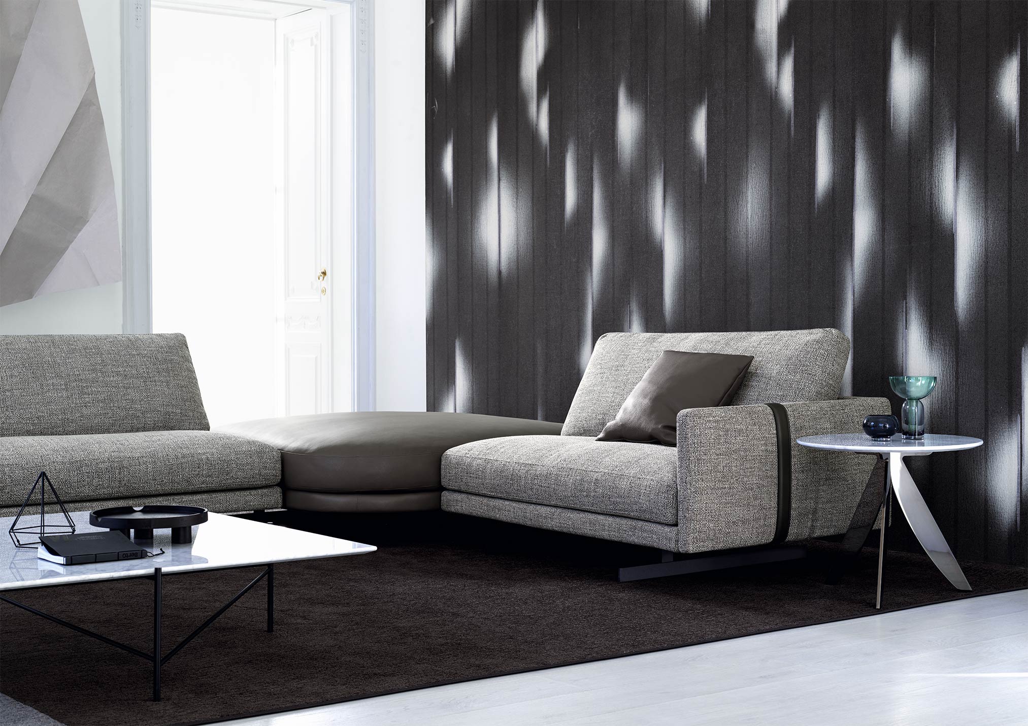 The Dee Dee sofa is an innovative seating system by BertO which re-writes the rules of design and comfort. In the corner version with the ROCKAWAY leather pouf proposed in the new article by BertO in the design and lifestyle magazines “Living” and “The Good Life”,