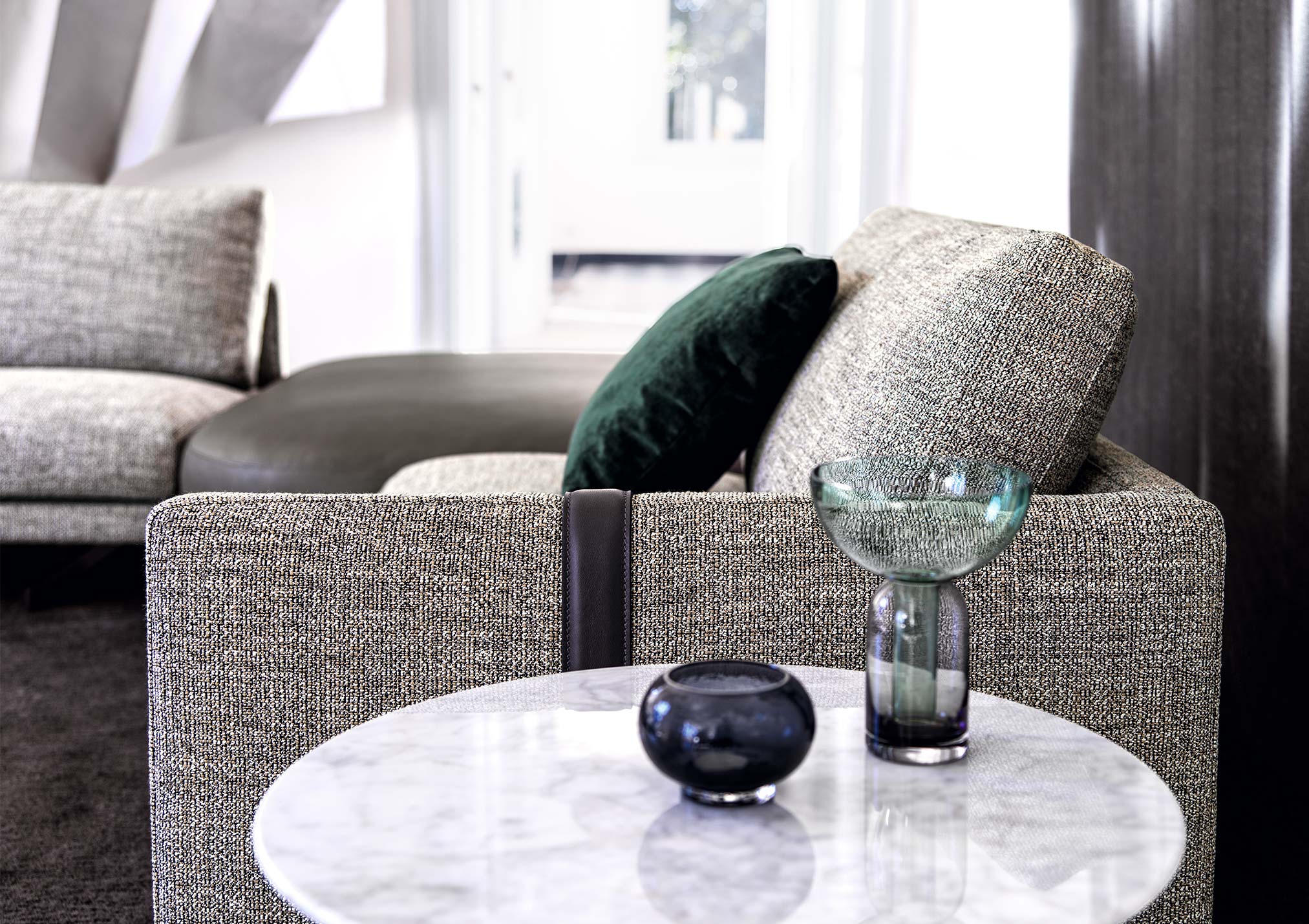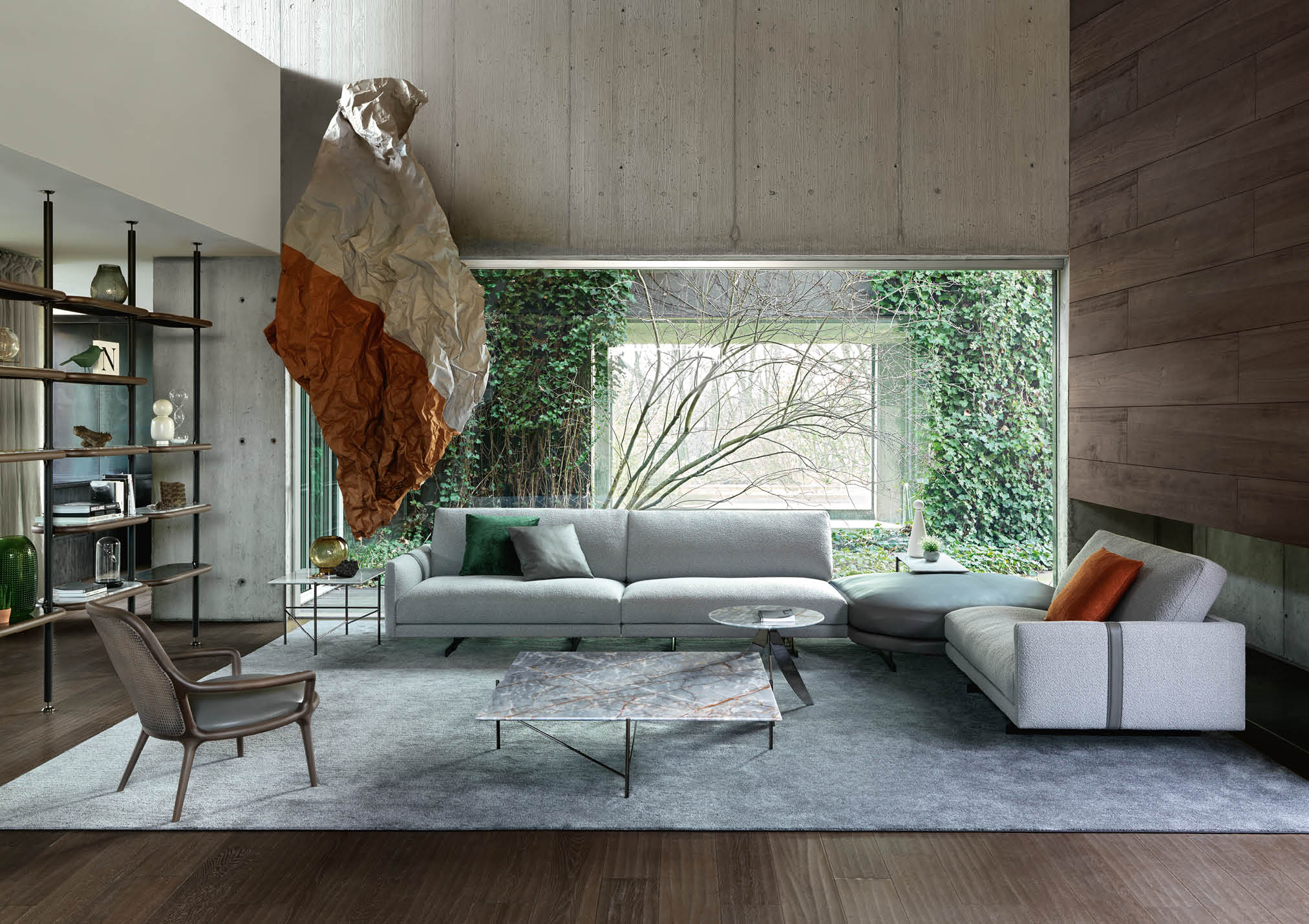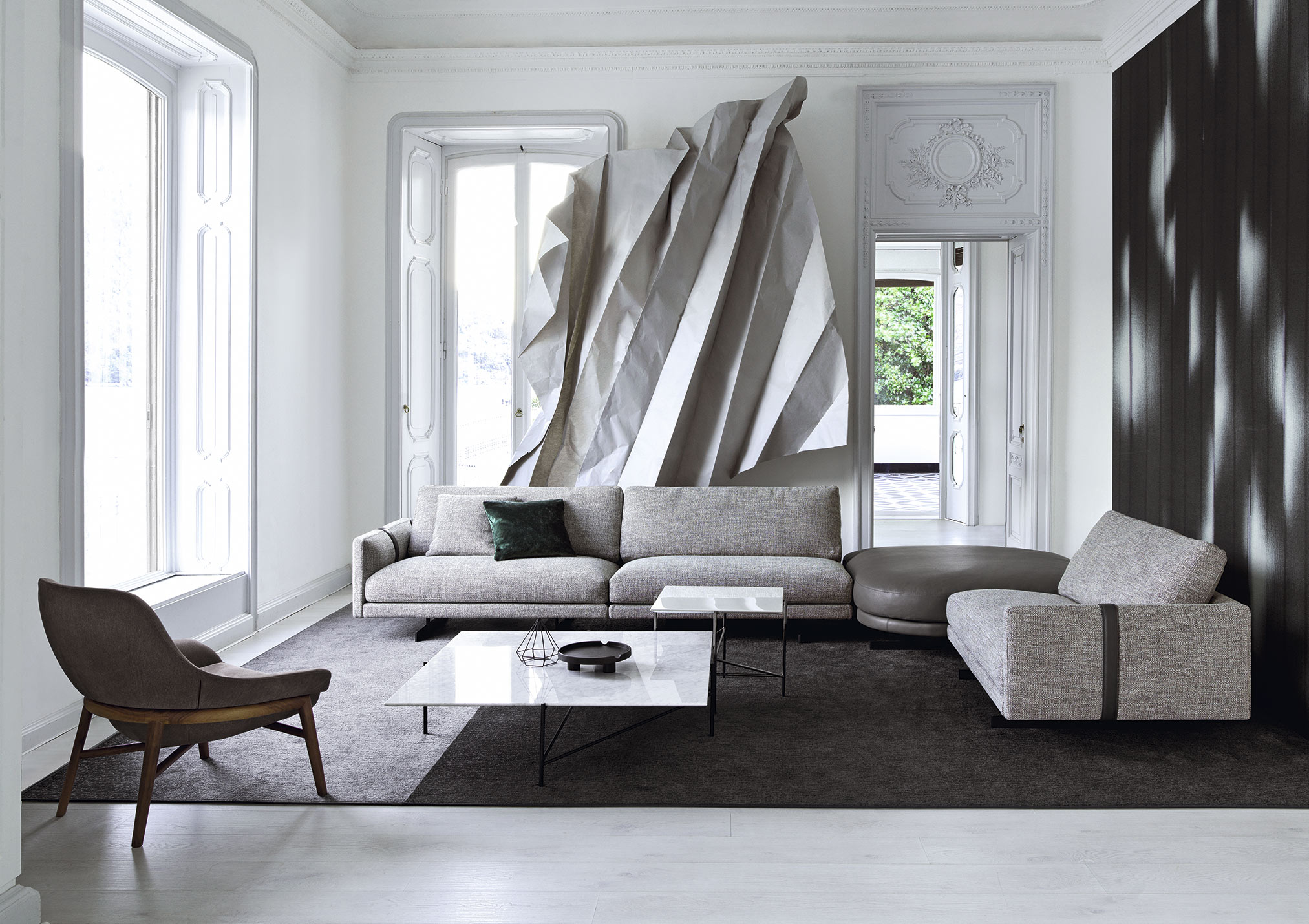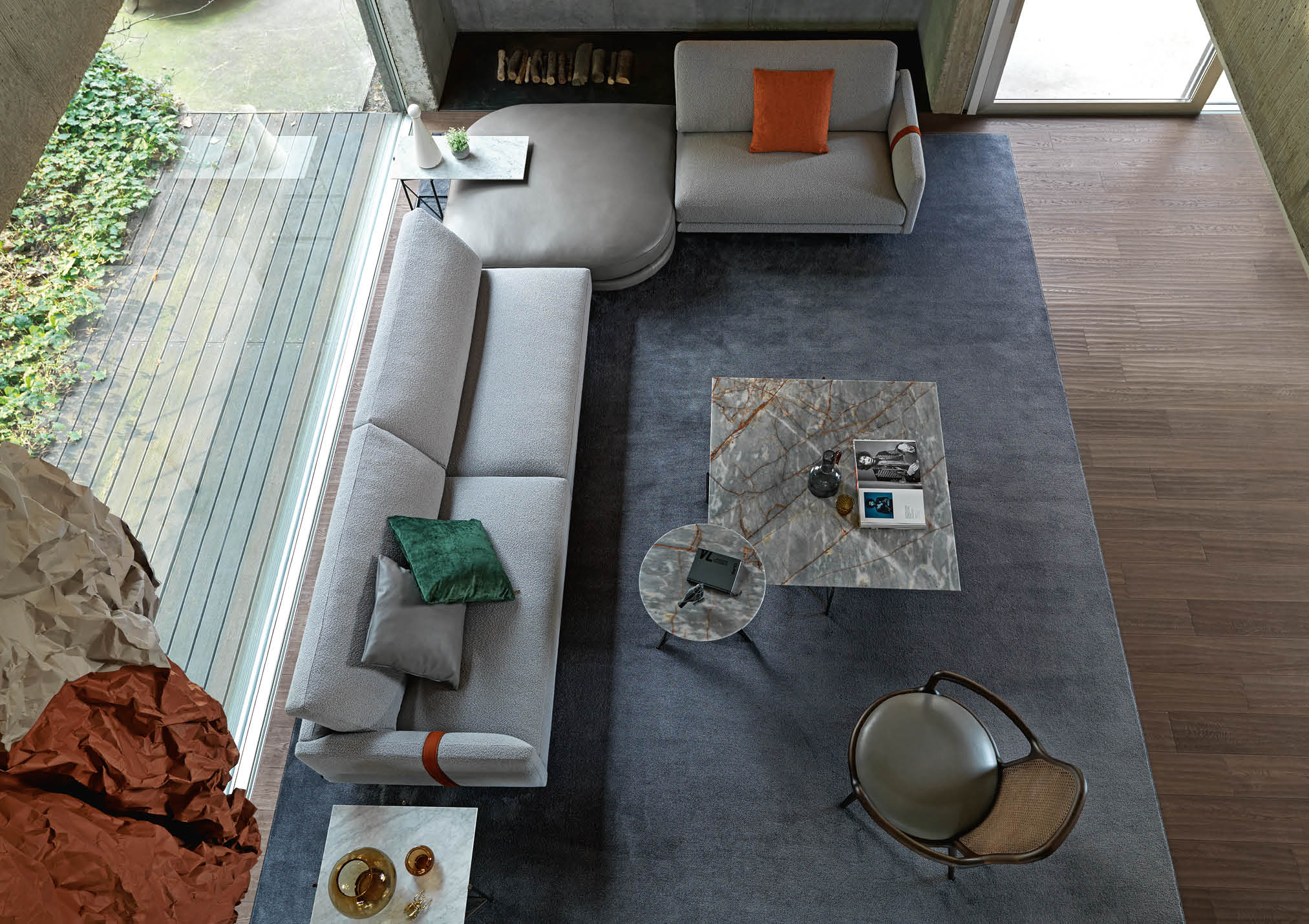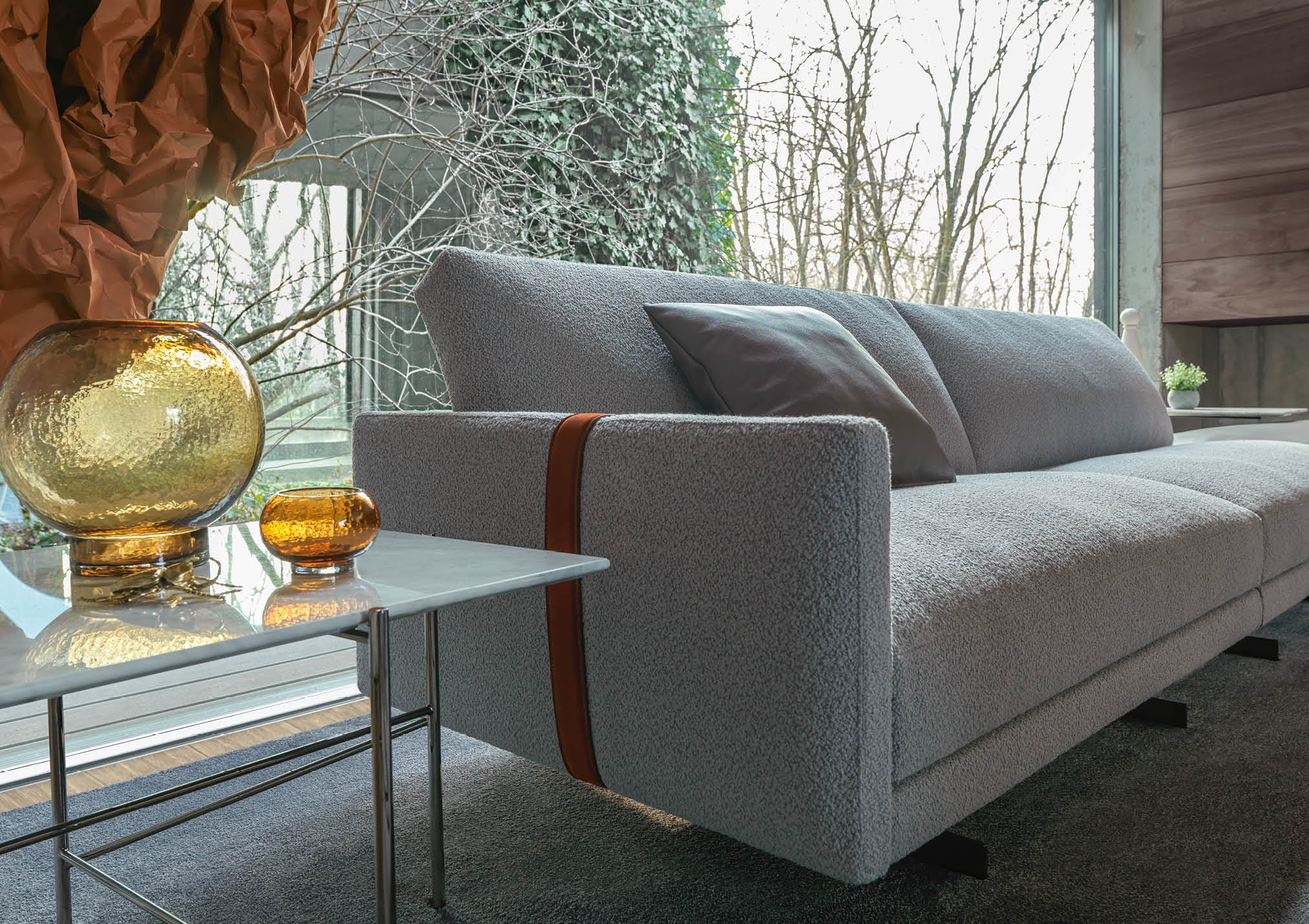 The Dee Dee sofa is an innovative seating system by BertO which re-writes the rules of design and comfort. In the corner version with the ROCKAWAY leather pouf proposed in the new article by BertO in the design and lifestyle magazines “Living” and “The Good Life”,