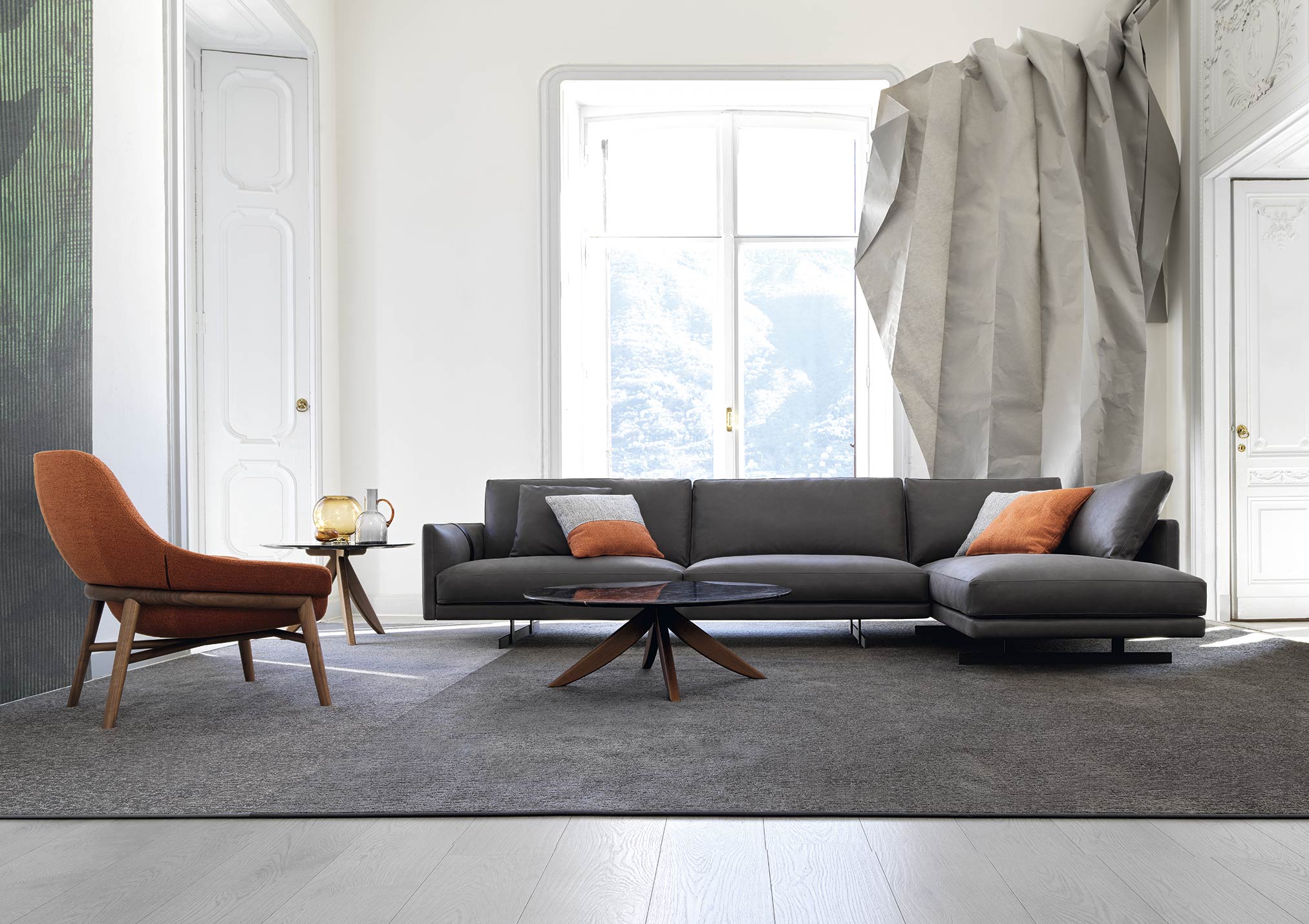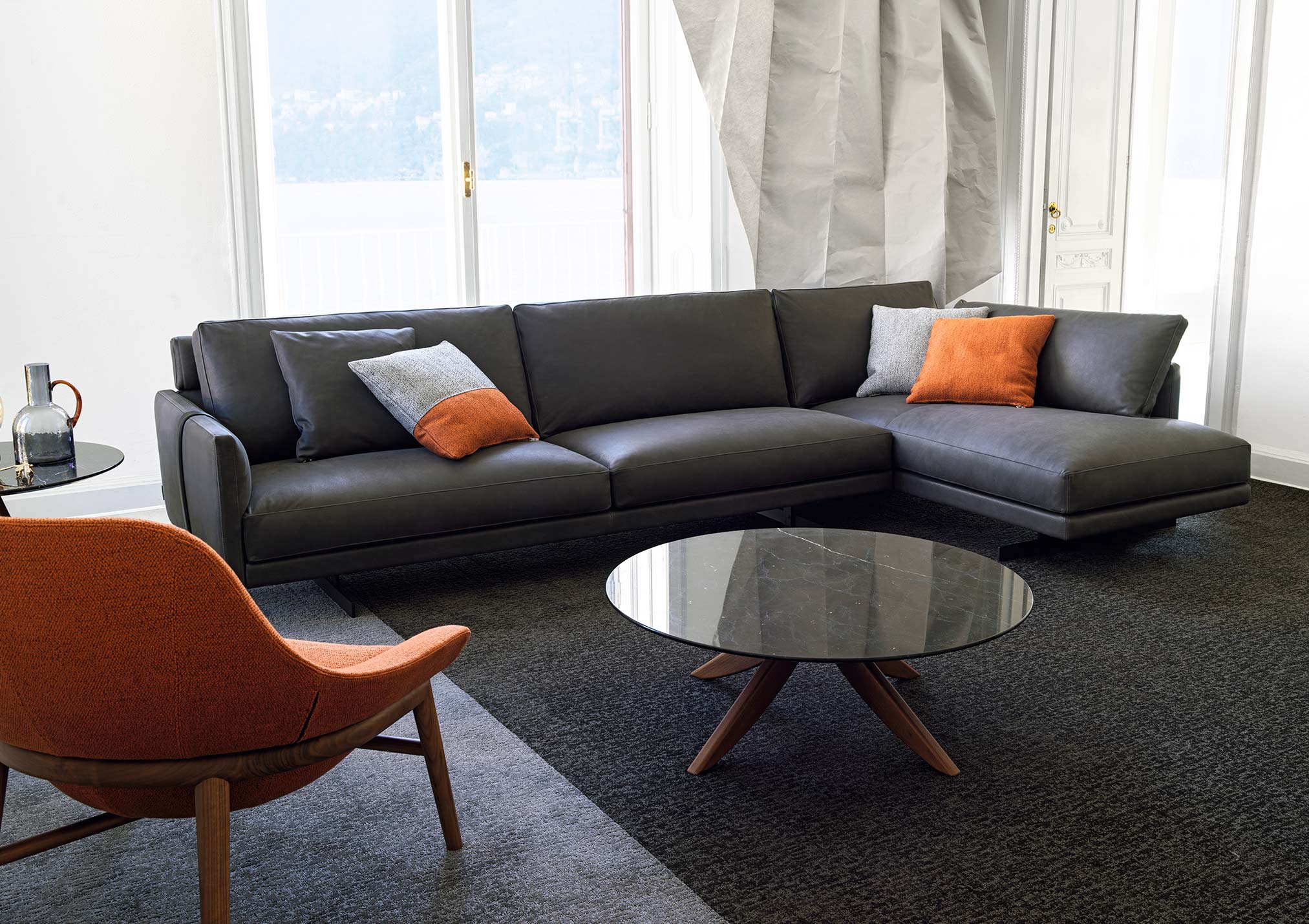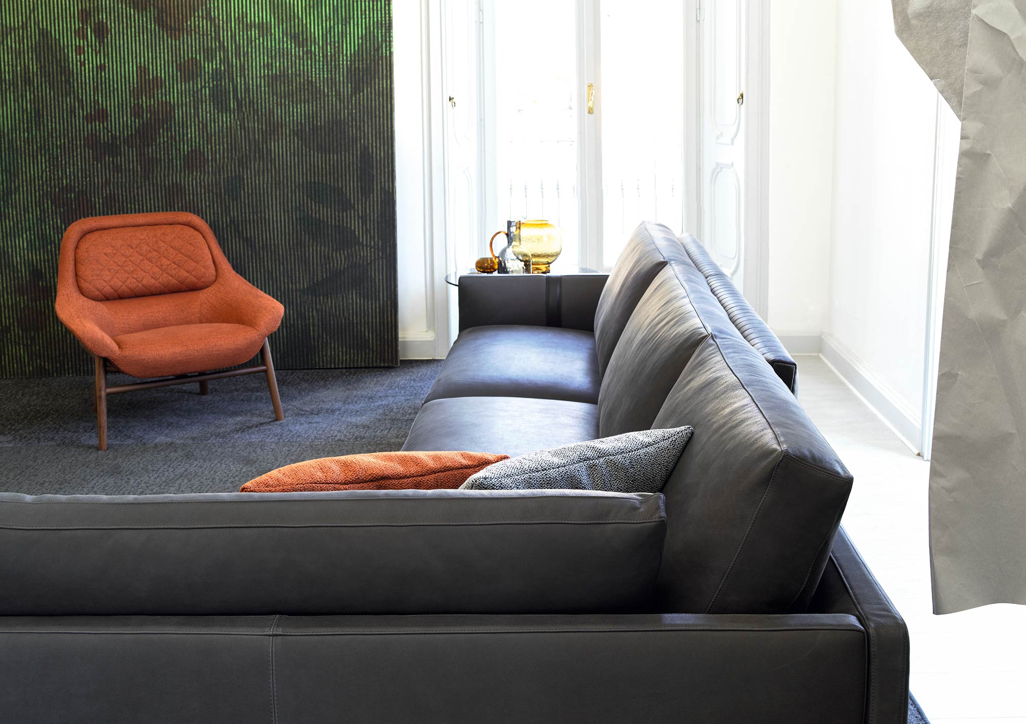 Dee Dee Modular Sofa in Leather The Dee Dee sofa is BertO’s innovative seating system which re-writes the rules of design and comfort, proposed in the version with small peninsula in lead grey coloured Douglas leather from the BertO collection. VIEW THE COLLECTION