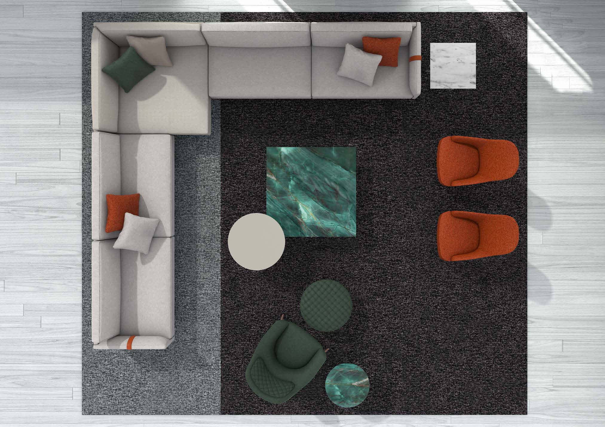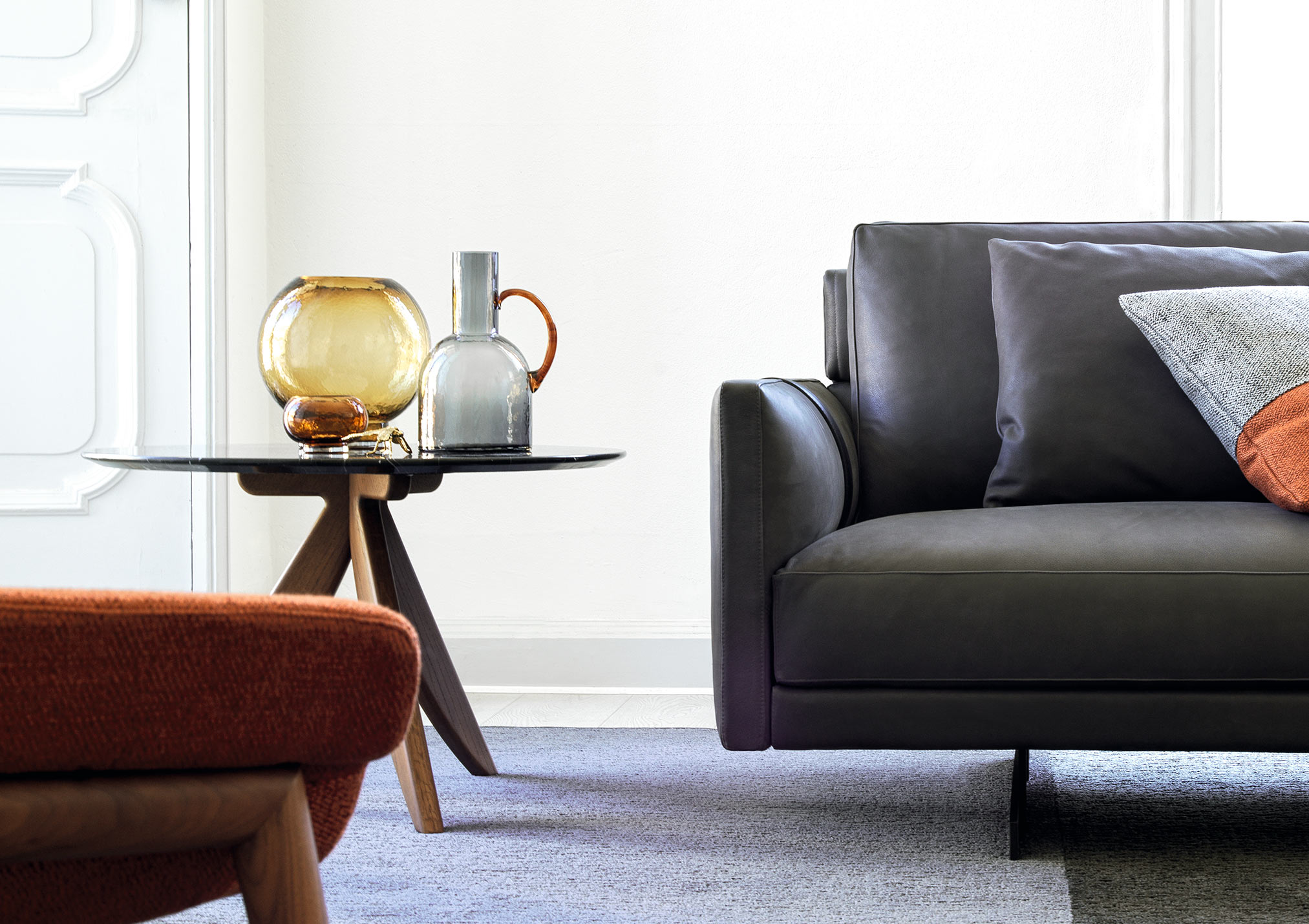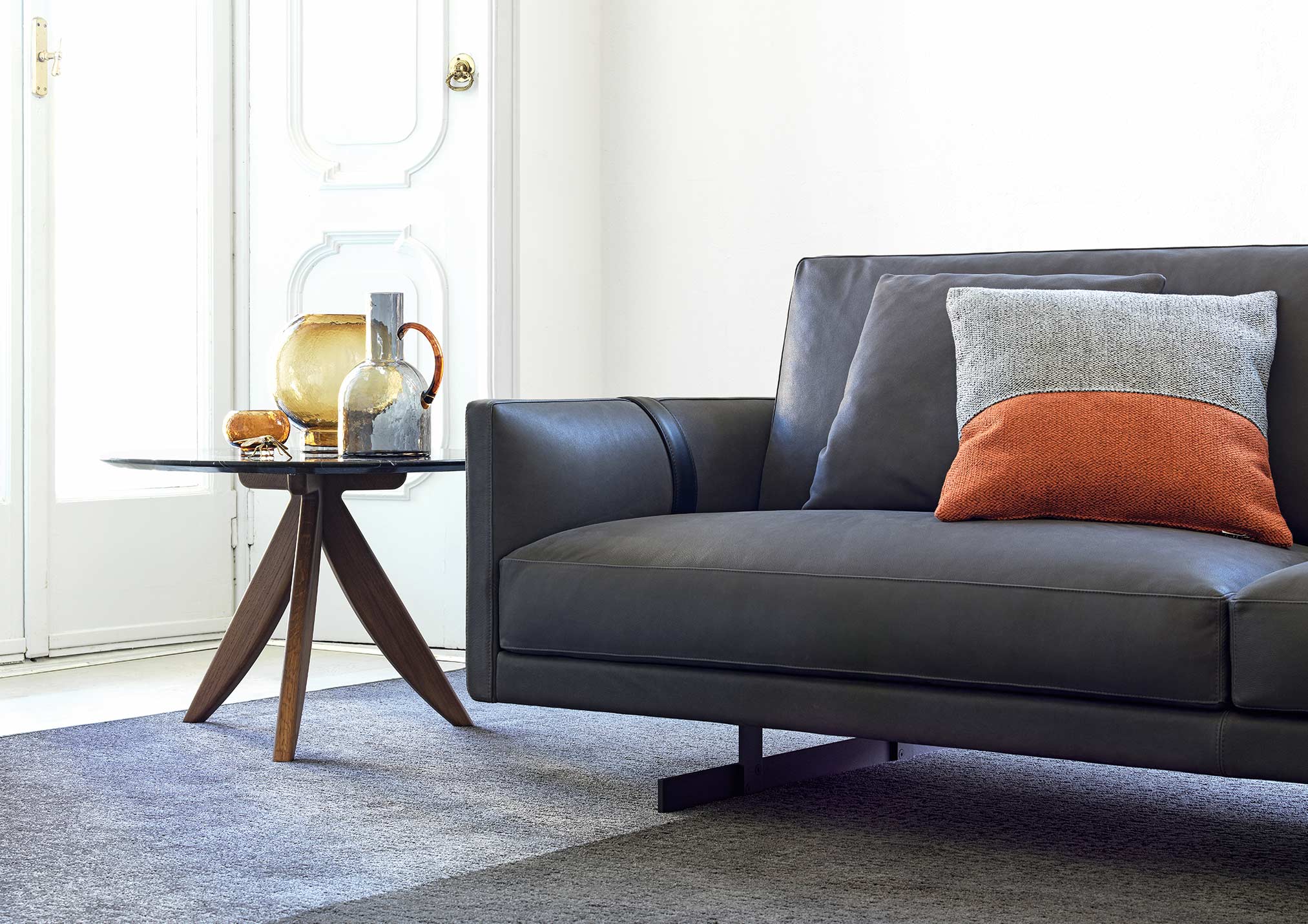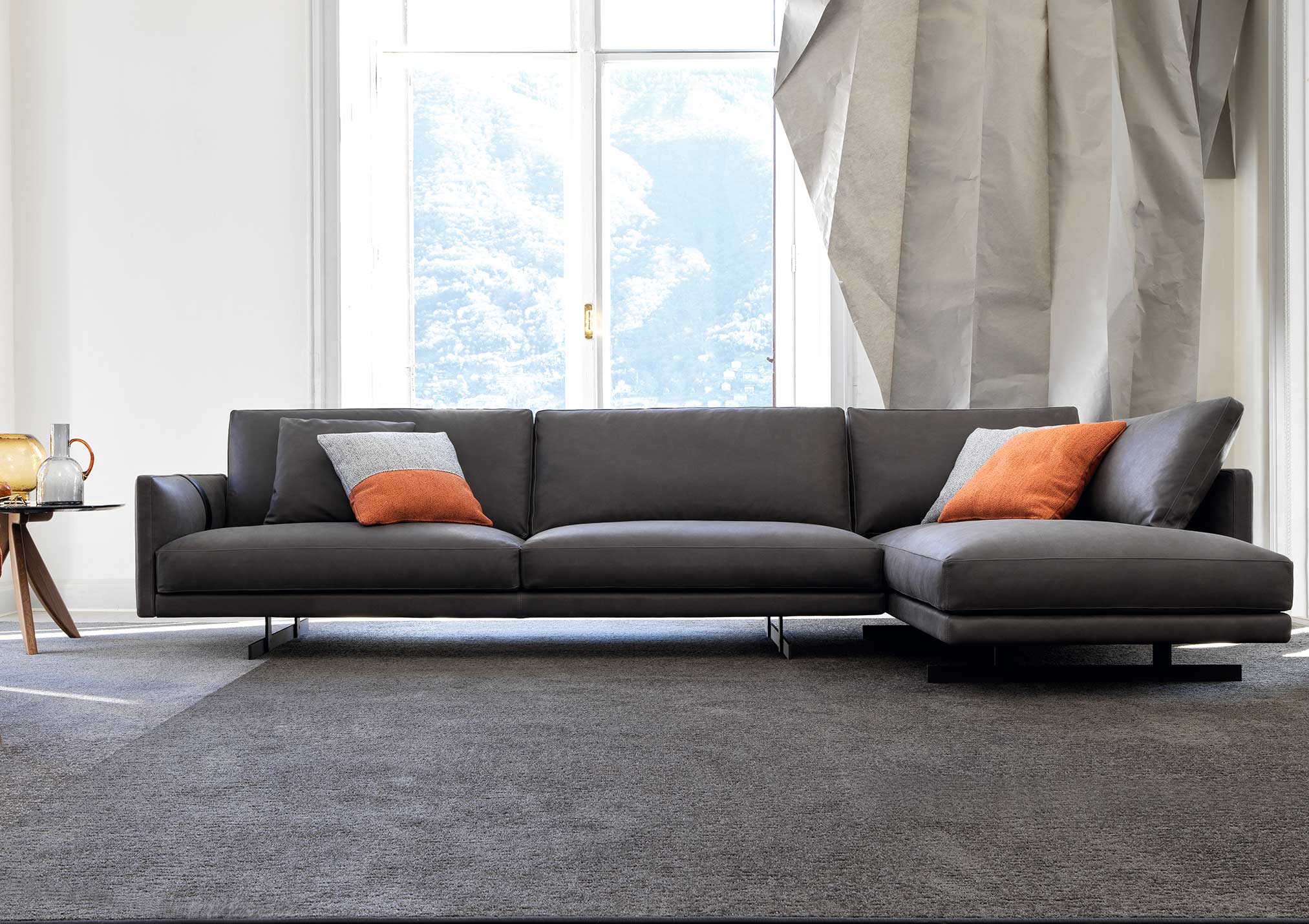 Dee Dee Modular Sofa in Leather The Dee Dee sofa is BertO’s innovative seating system which re-writes the rules of design and comfort, proposed in the version with small peninsula in lead grey coloured Douglas leather from the BertO collection. VIEW THE COLLECTION