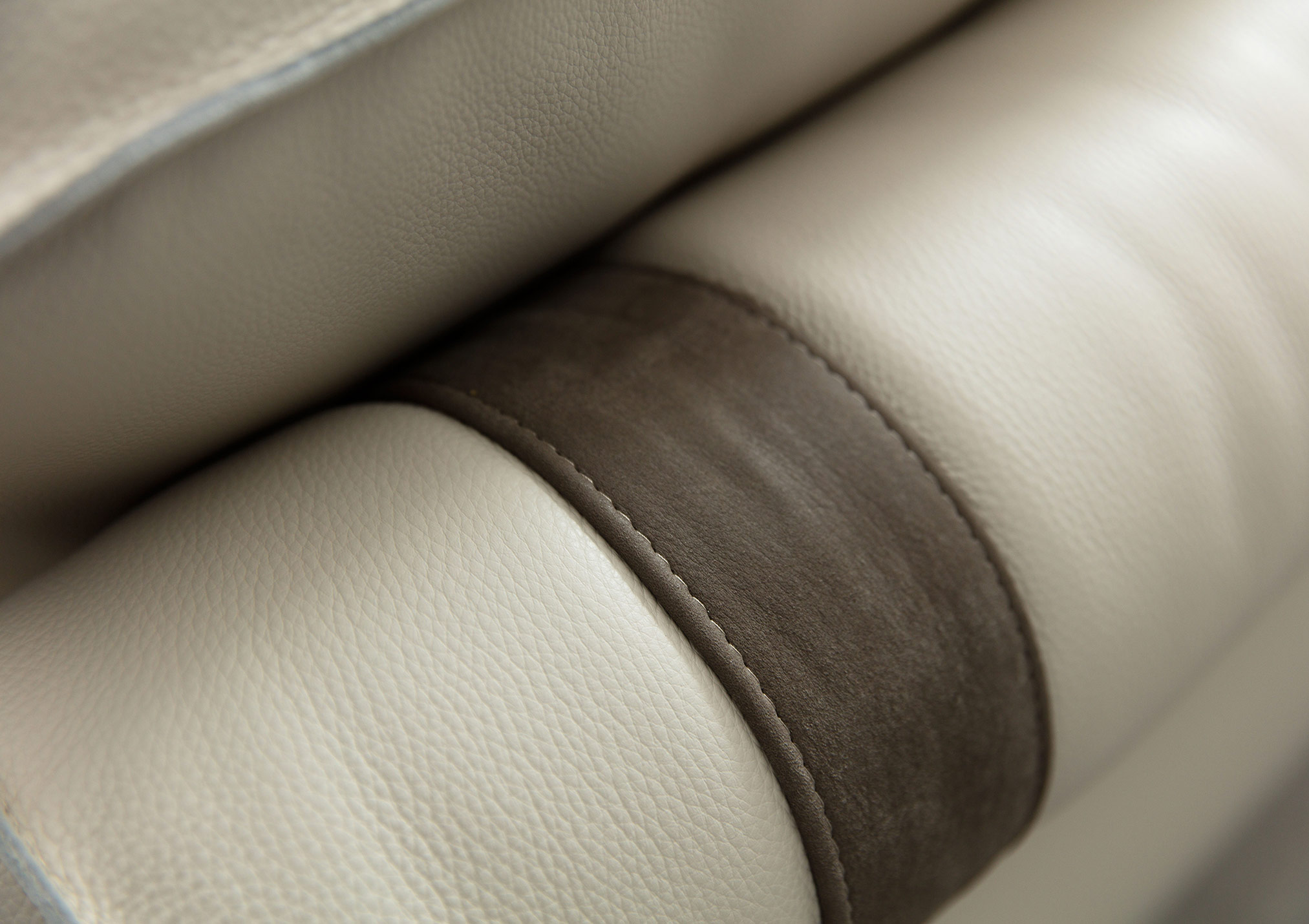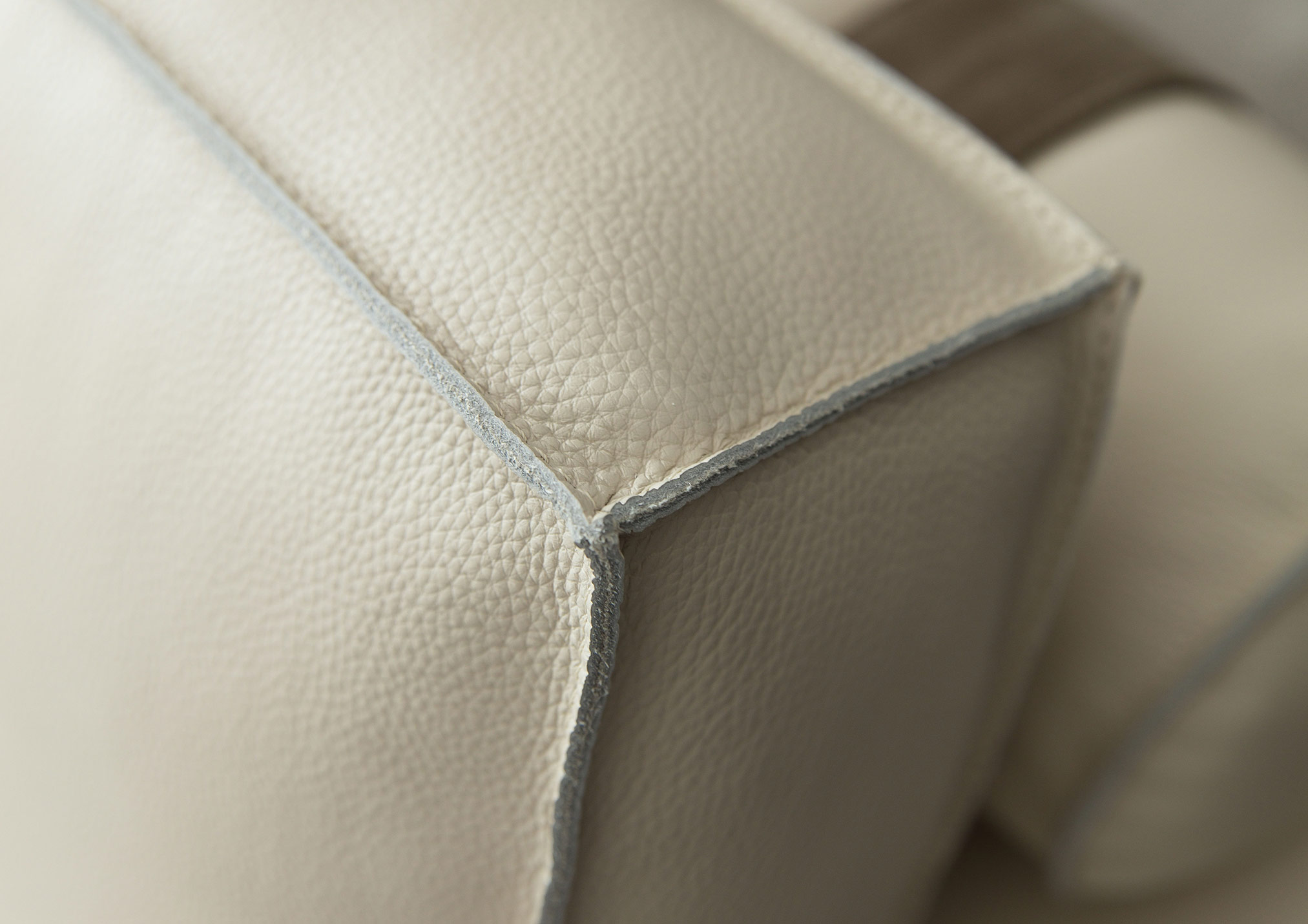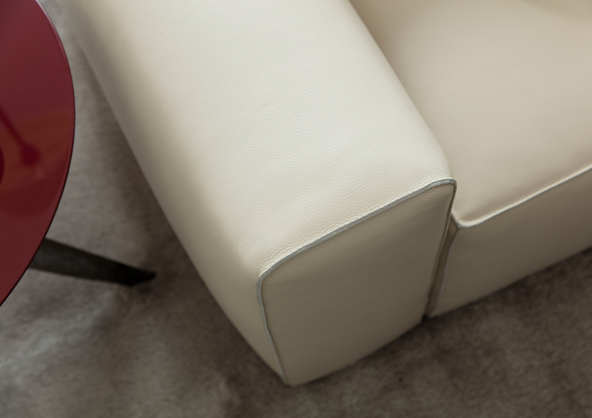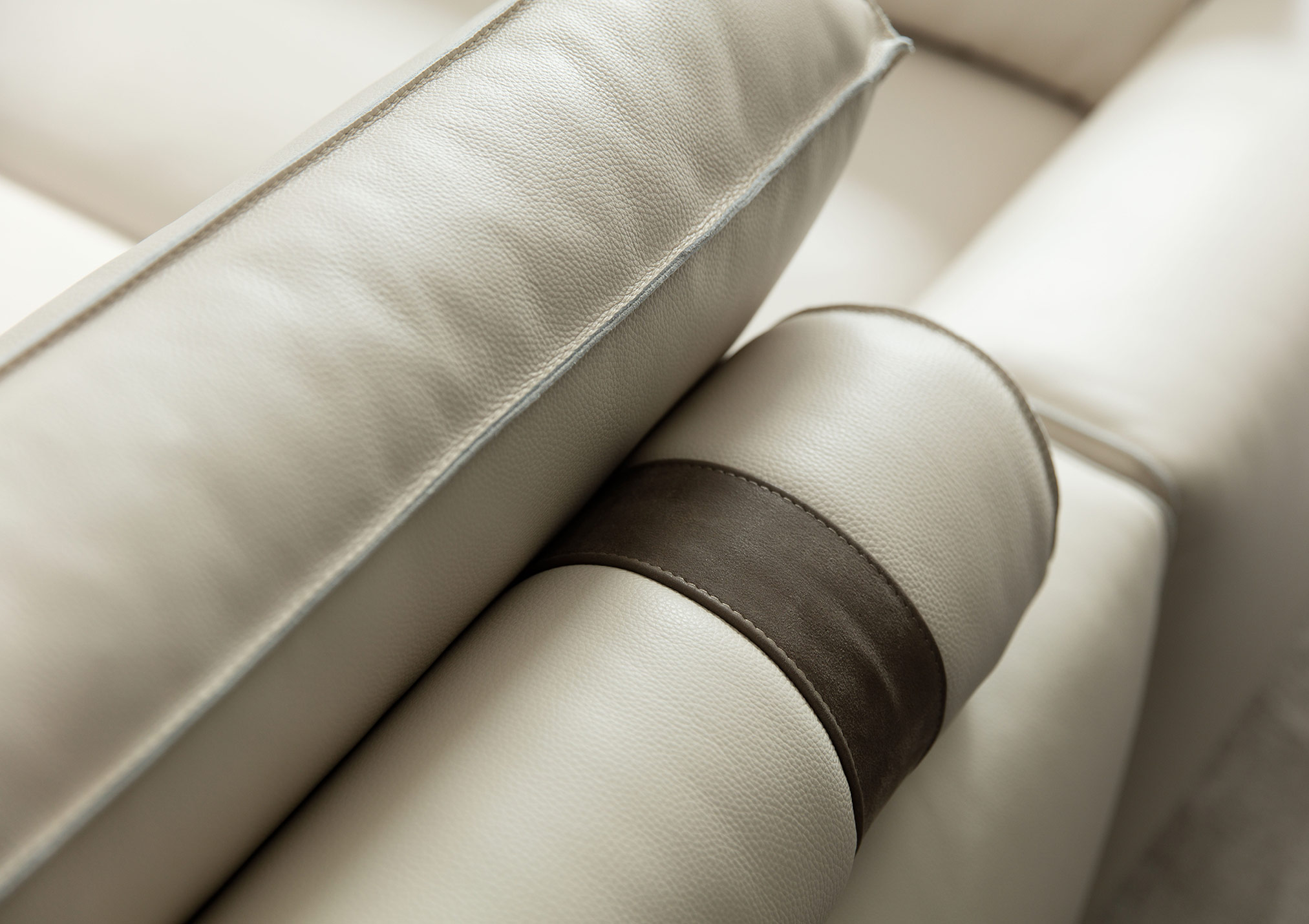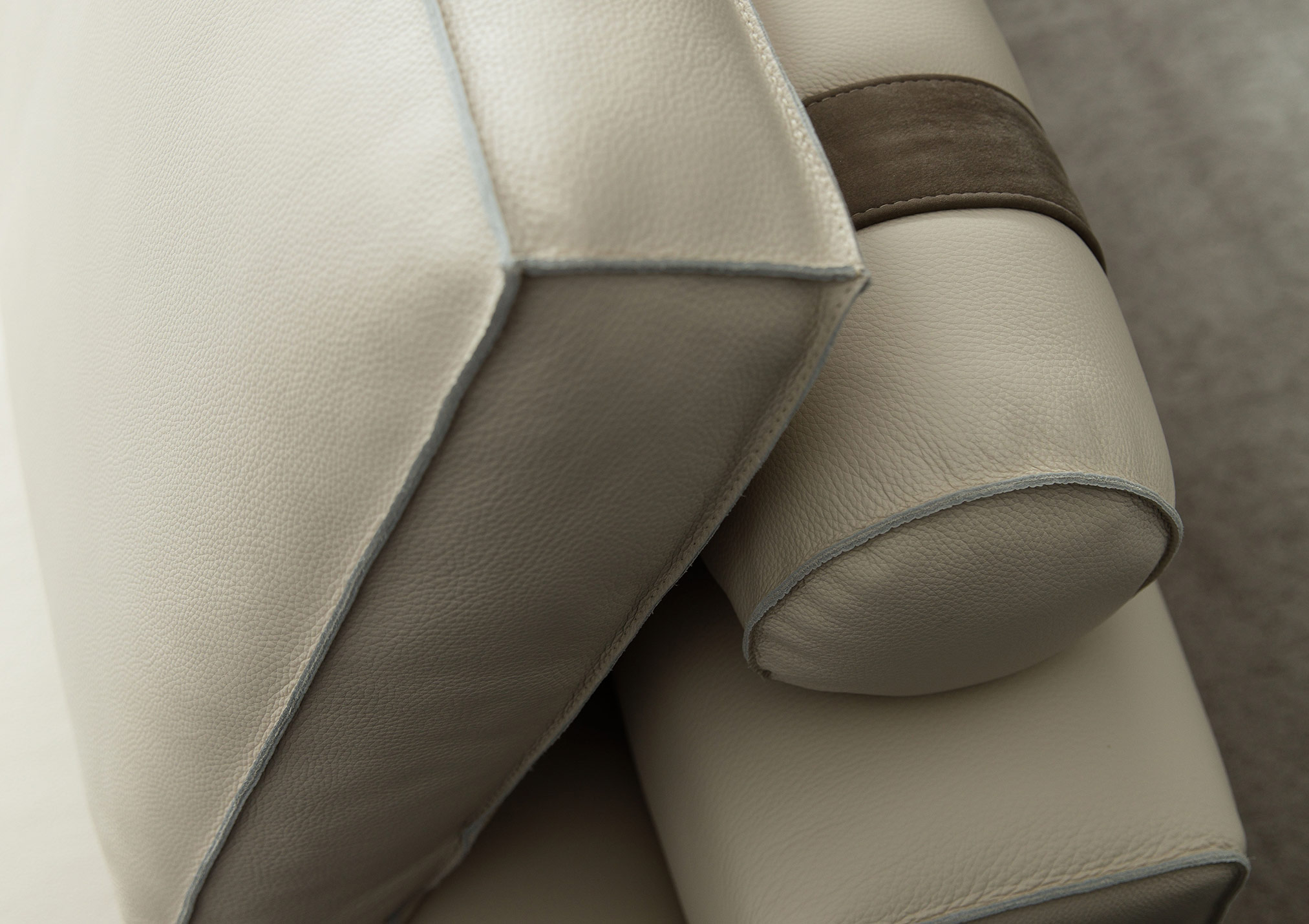 The perfect combination of traditional upholstery and high technology in our sofa Johnny with leather chaise longue.